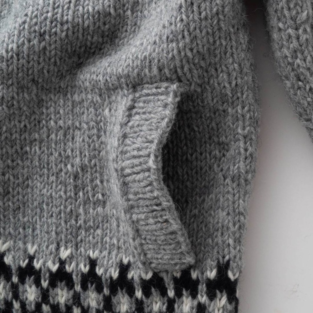 - ハンドメイドの温かみを感じられるこのクル-カ-ディガンは独特なデザインと色使いで他と一線を画します。特に強調すべきは、程よいフィット感のクル-ネック、水牛の角から削り出したボタン、オリジナルのジャガ-ド柄、着用時の柄のバランスの良さが挙げられます。