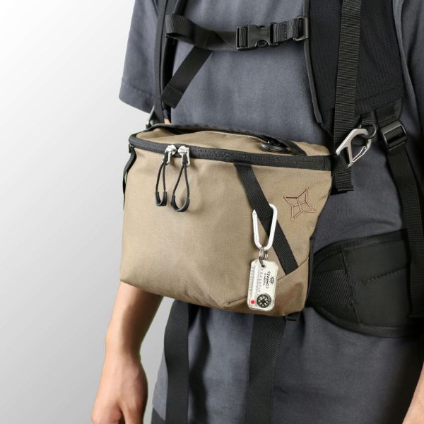 行動中はチェストバッグとして使うと、重量をザックに分散し肩の負担を減らせます。