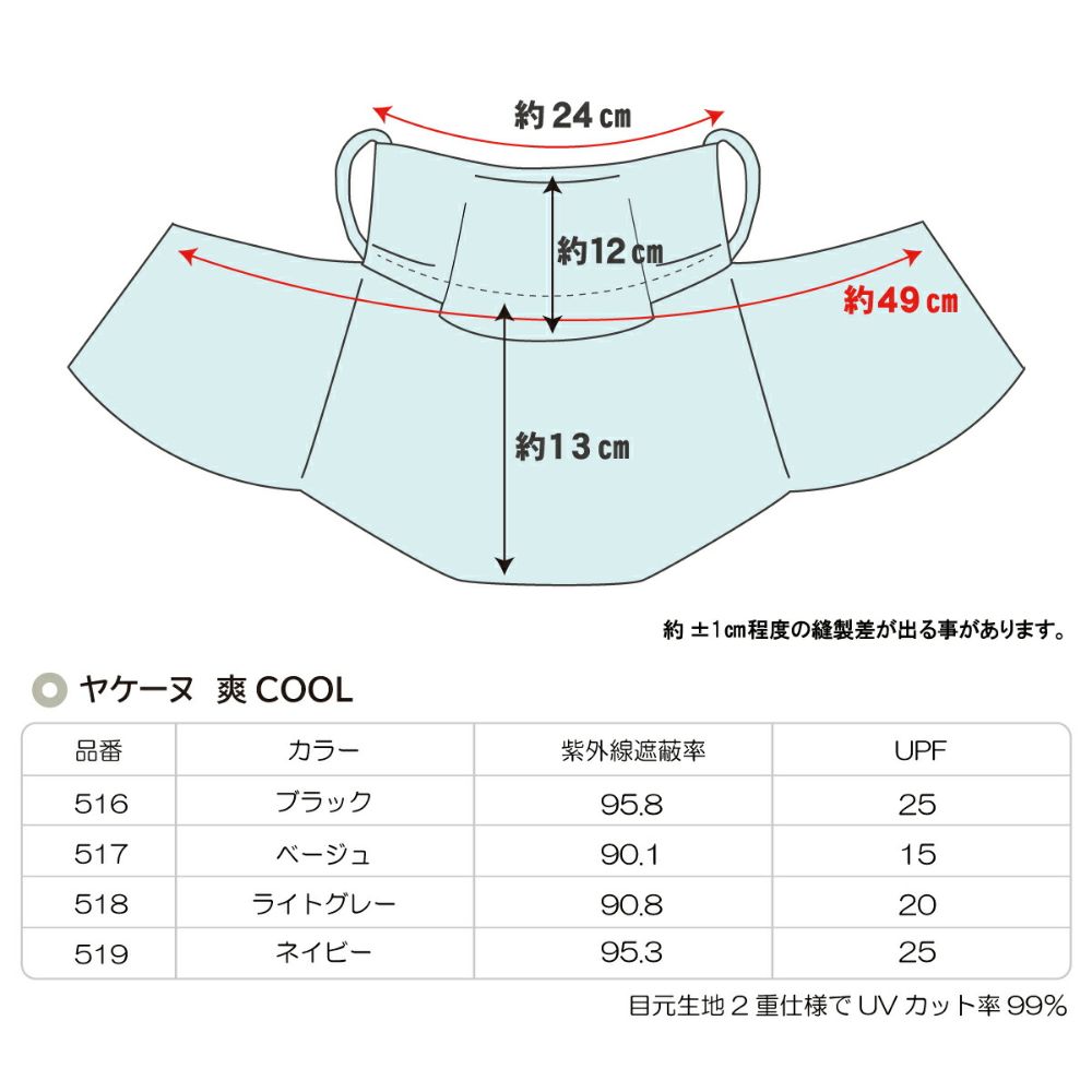 UVカット マスク ヤケーヌ 爽 COOL(スナップ式/鼻芯/打ち水効果) / ブラック 514_BK 爽クール フェイスカバー
