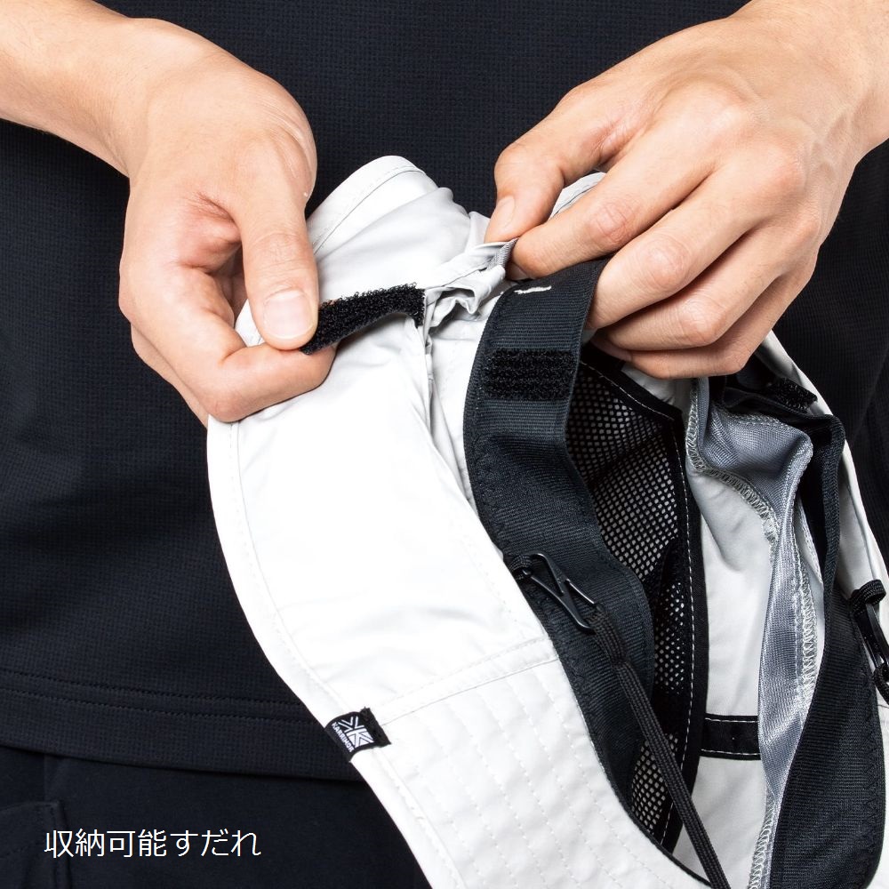 光を反射する素材のロゴプリントを額部分に配し、暗闇での視認性を向上。