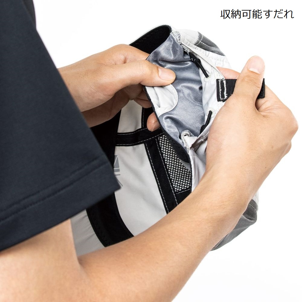 スダレは後頭部のポケットへ収納可能。