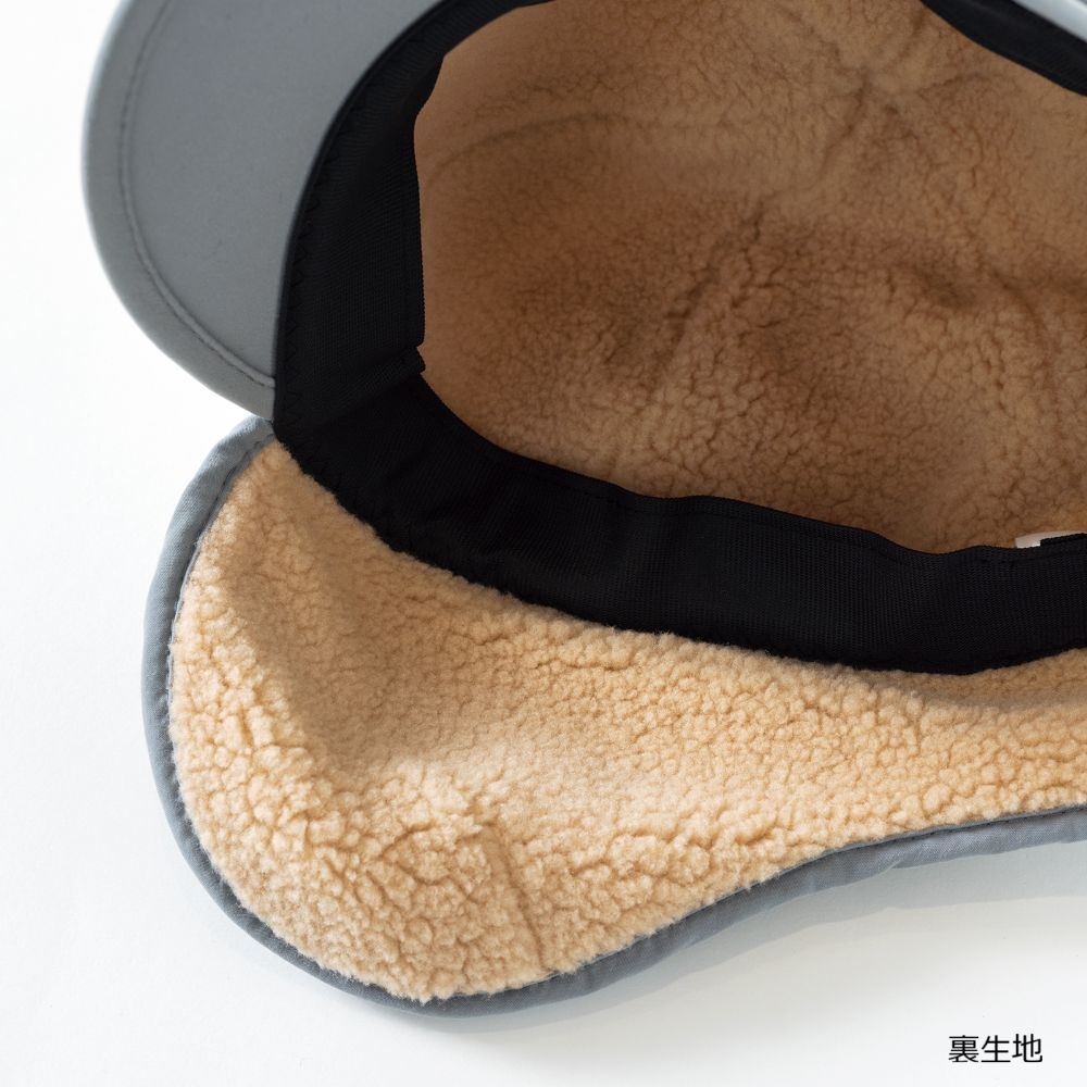 耐久はっ水加工された表地と、暖かい厚手フリース素材を組み合わせた耳当て付きキャップ。