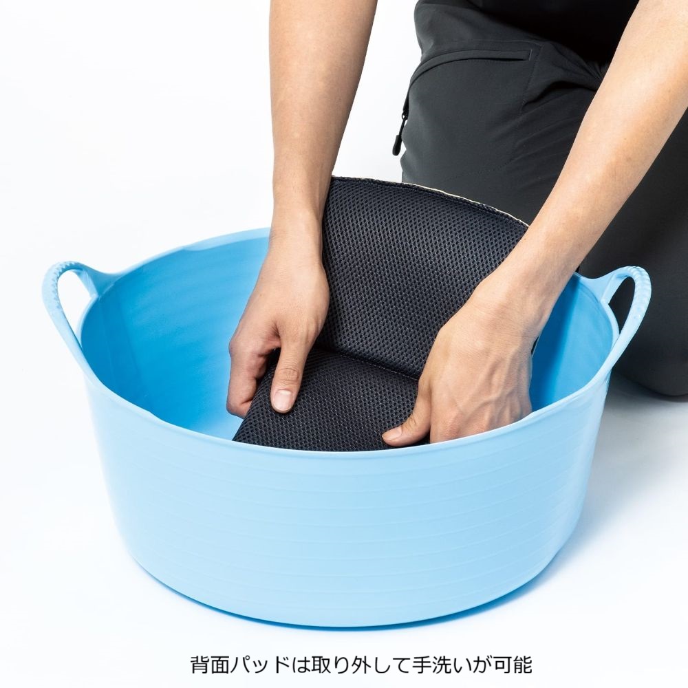 生地はリサイクル高密度ナイロン生地にワッシャー加工を施して自然なシワ感を表現。