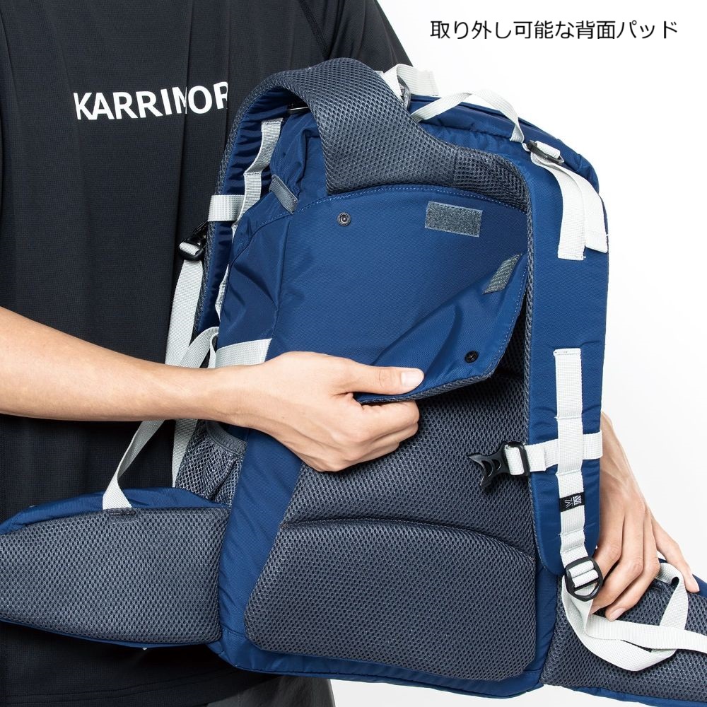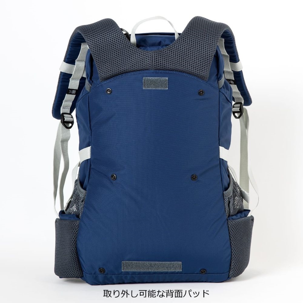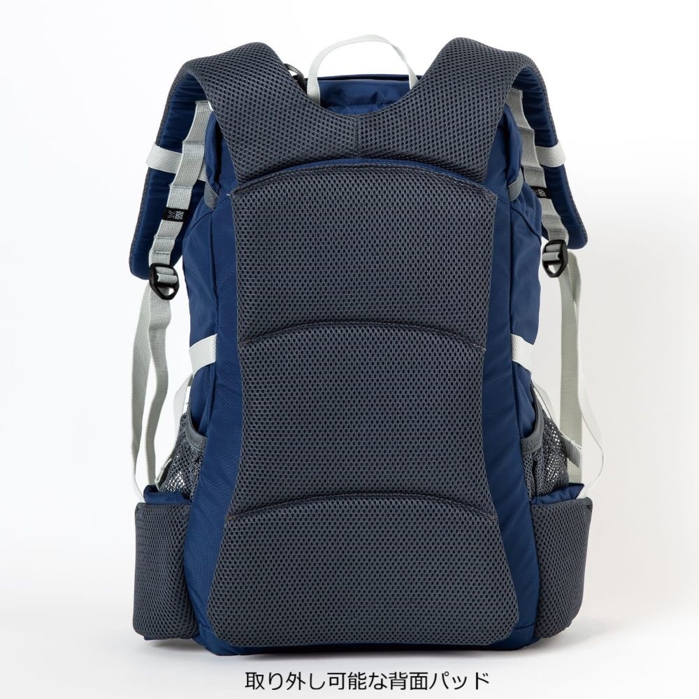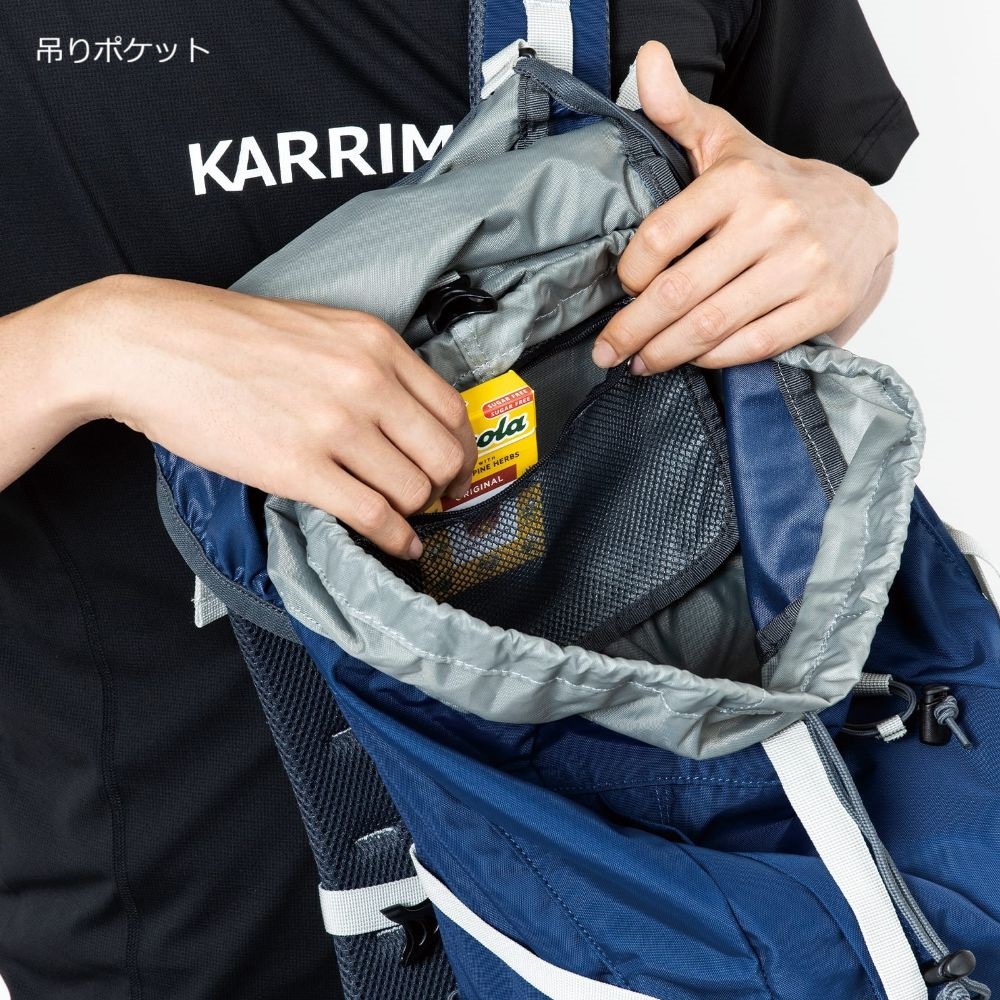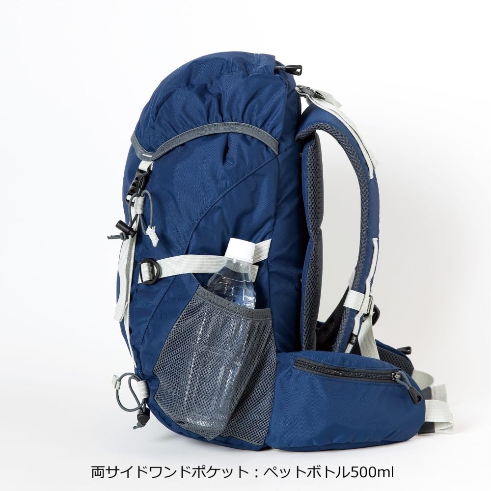 パッド入りりヒップベルトにポケットを装備、大き目のワンドポケット、フロントポケットなどトレッキング用で活躍する機能を多数装備した機能充実の小型トップローダー。
