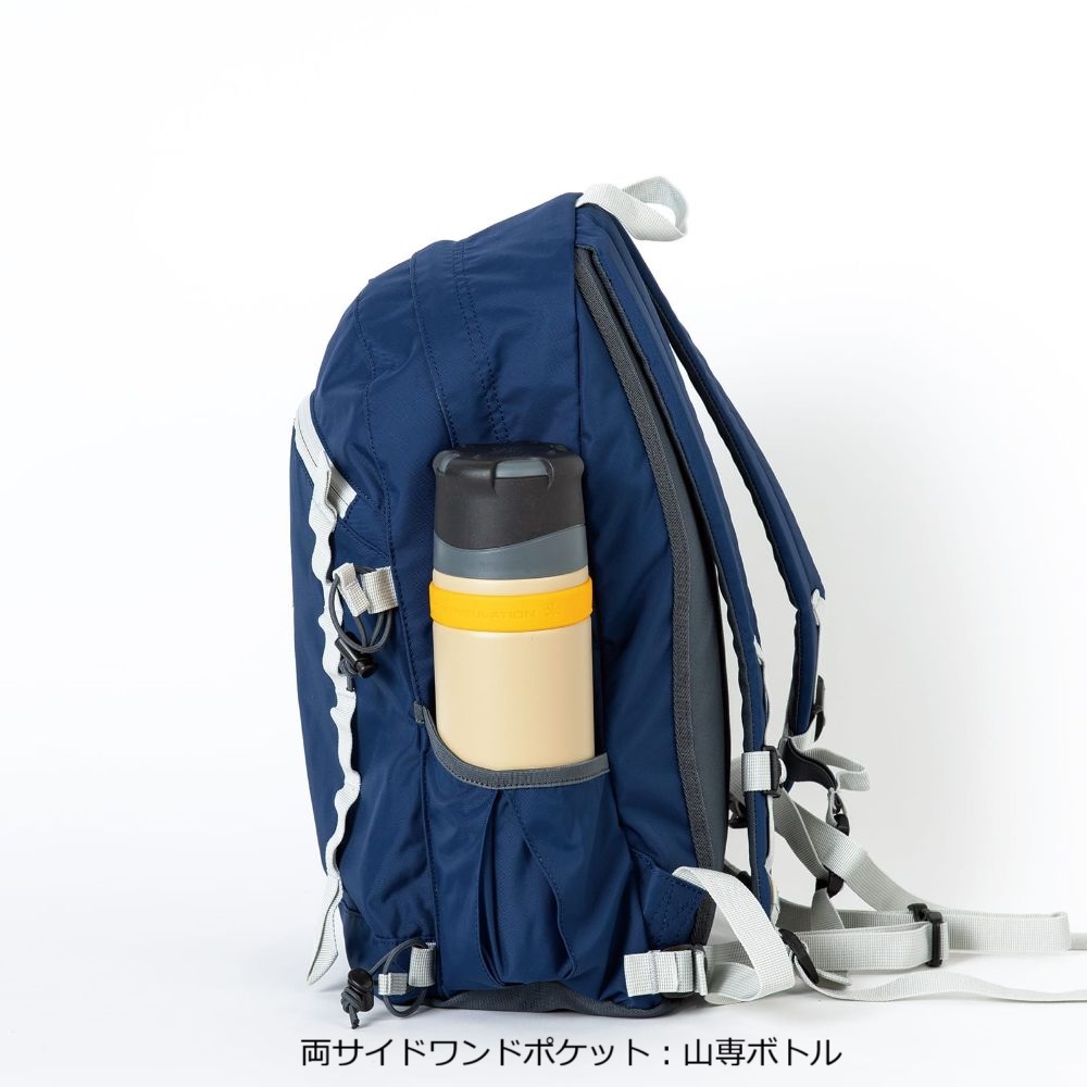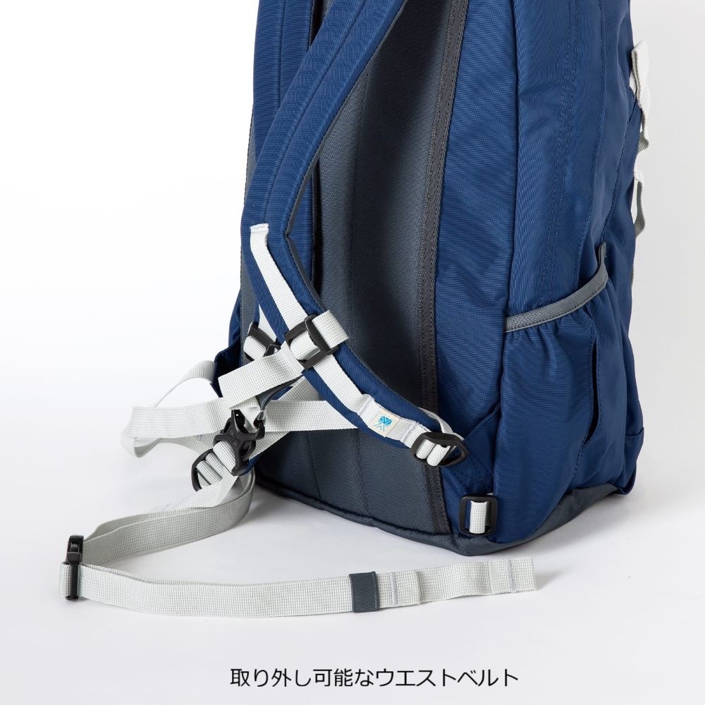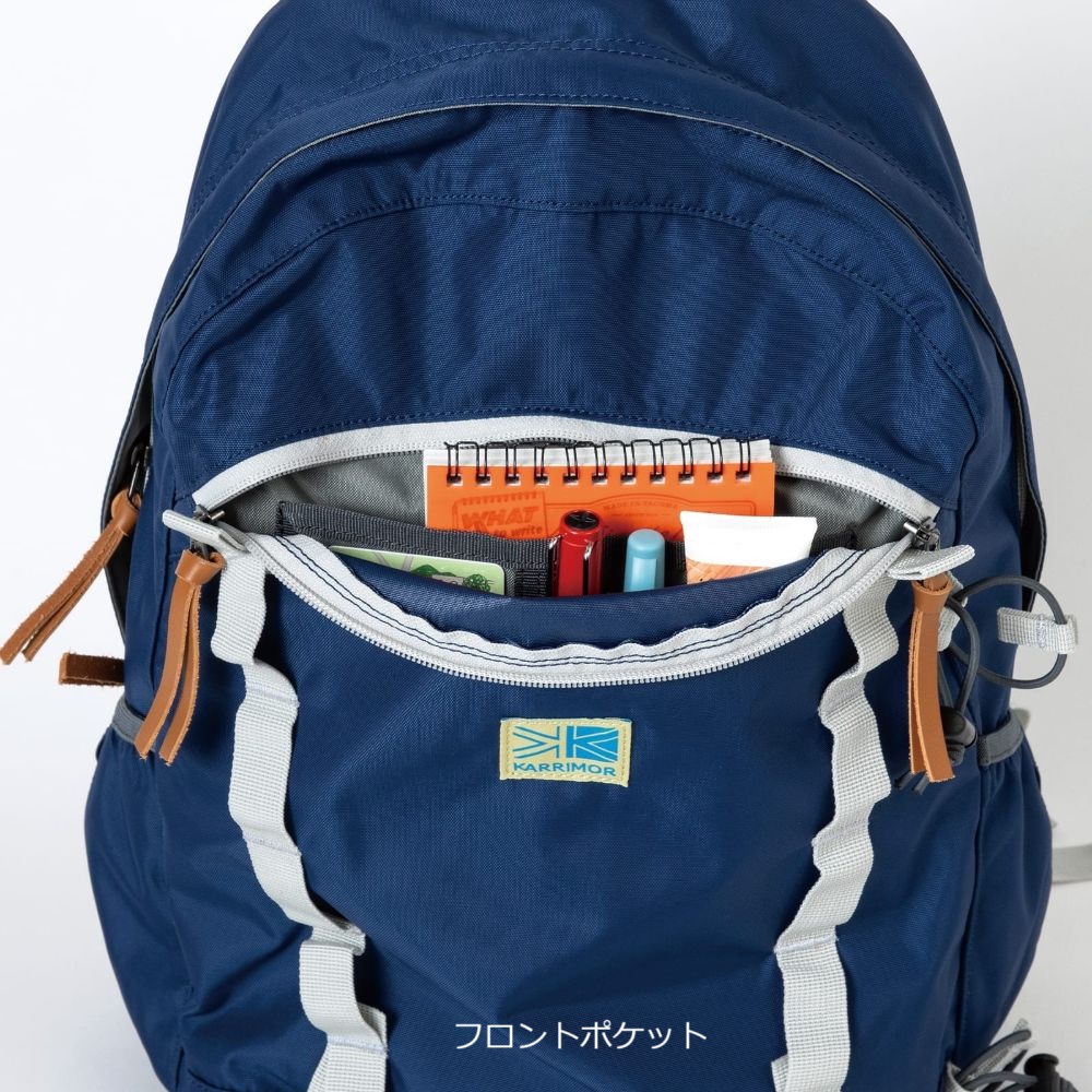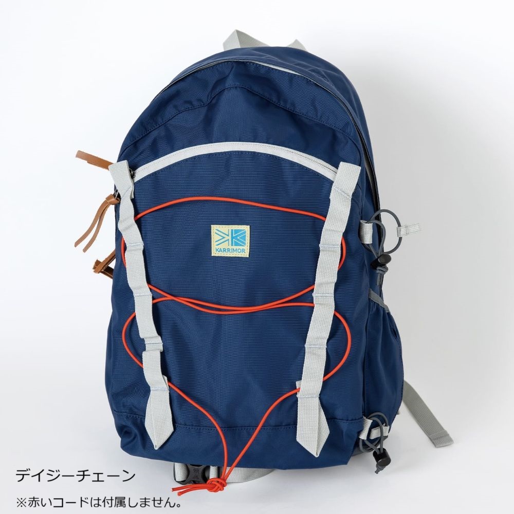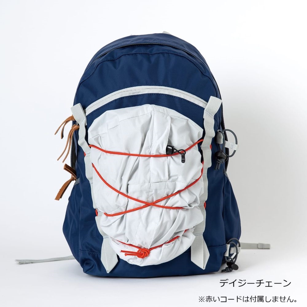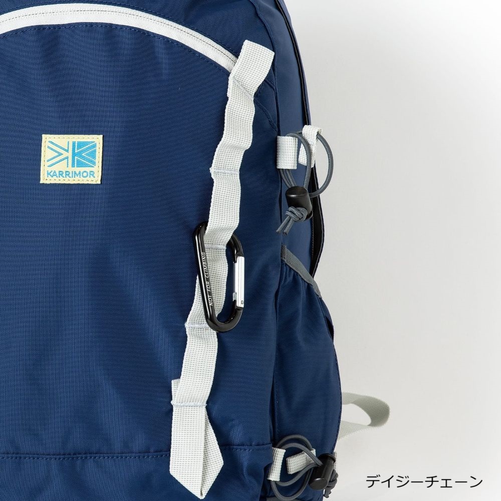 機能性を高めるだけでなく、アウトドアテイスト溢れるデザインのアクセントにもなる、カラビナなどをかけることのできるデイジーチェーンをフロント部分に装備。