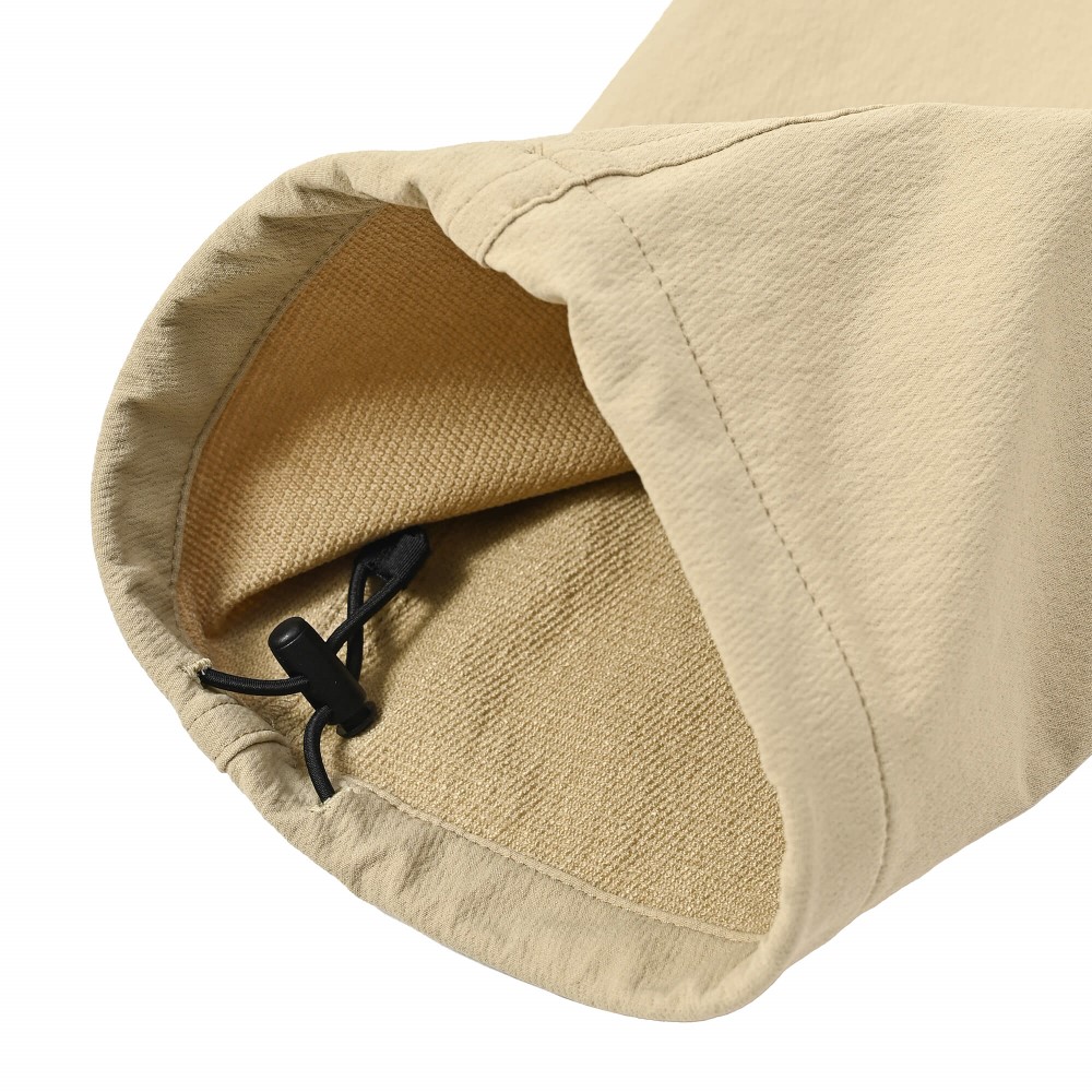 膝の可動域を広げる立体裁断パターンを採用し、アウトドアでのダイナミックな動きにも対応。ウエストはバックルベルトでサイズ調整が可能です。