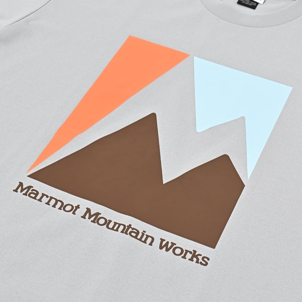 胸に人気定番化した大胆なカラーブロッキングのMarmotのMをグラフィック化したプリントを、左袖口にドットMプリントを配置。