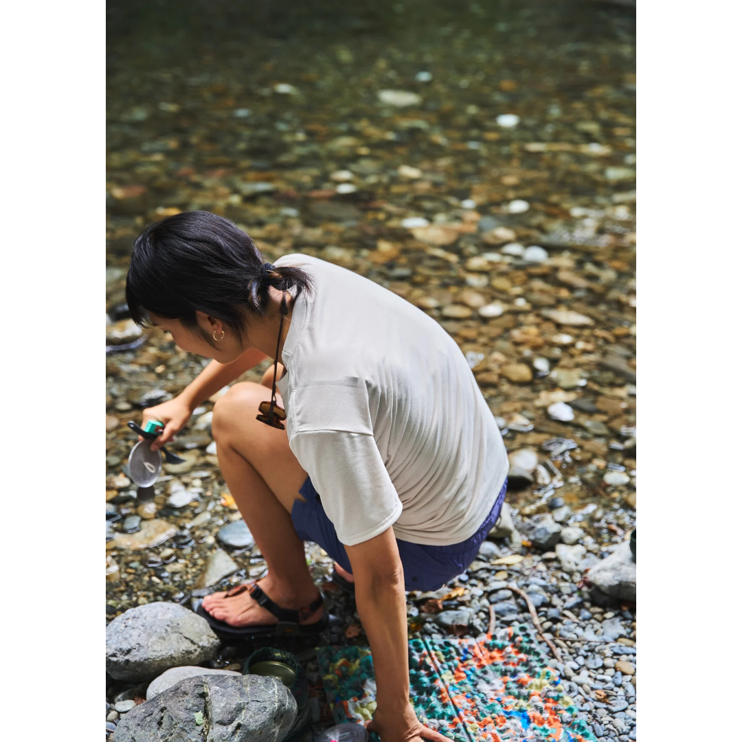 日常でも、アウトドアシーンでもすぐに乾く。深夜に洗濯しても朝までには乾いているから。忙しい毎日でも使いやすい。そんな毎日に嬉しいTシャツです。