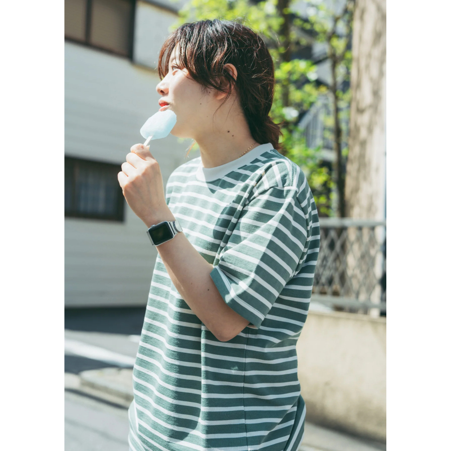 ドライコットニー ヘビーウェイトボーダーTシャツ / Green×Ecru DRYCOTTONY Heavy Weight Border T-shirt BD0155 ユニセックス [25SS]