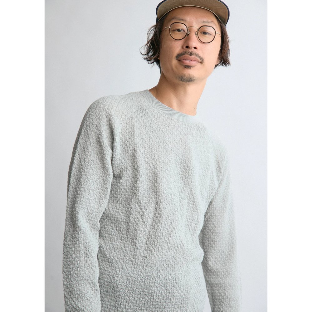 特徴的な凸凹した表面感は、体温を衣類の中にしっかりとキープします。また縫い目がないので素肌に着てもゴロつきにくく、素肌の上に着た時に最高の機能を発揮します。