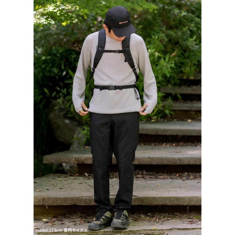 BRING MaterialTMの再生ポリエステルが持つ速乾性でウール100%と比較して早く乾くので、行動中は常に肌をドライに保ちながら、洗濯時も早く乾きます。