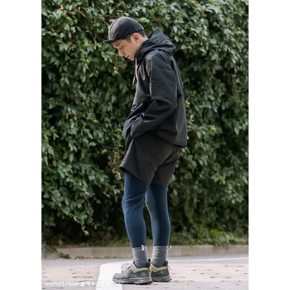 - ワンダーウェアと同素材のレギンスです。ワンダーウェアと比較すると股上が深めに作られているので、ワンダーウェアや他のアンダーウェアの上に穿くこともできます。ハイキング、登山を想定し、メリノウール70%、再生ポリエステル30%の混紡で保温性を高めました。ウエストは平ベルトでしっかりとホールドし、ずり落ちを防ぐので1枚で穿いても安心です。