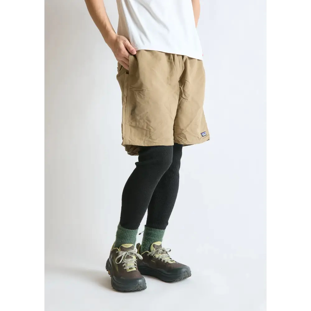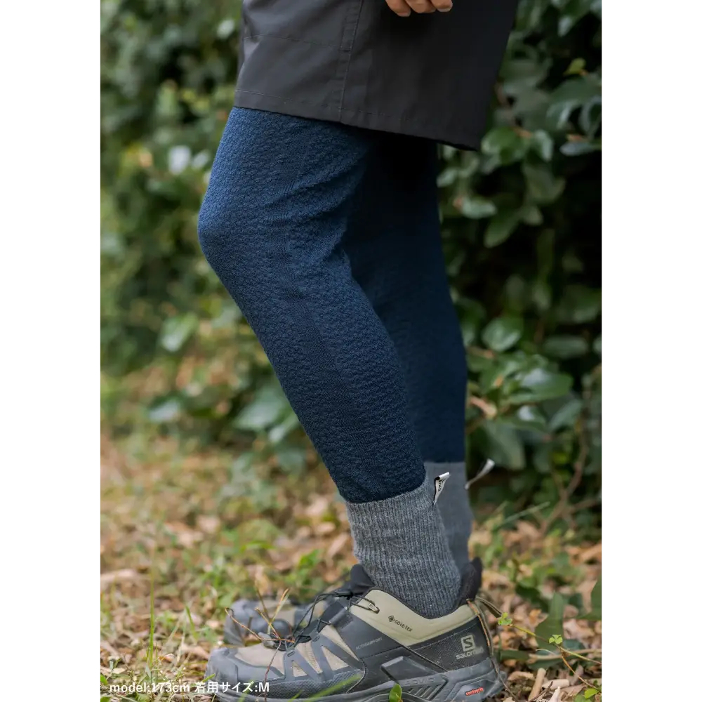 - ワンダーウェアと同素材のレギンスです。ワンダーウェアと比較すると股上が深めに作られているので、ワンダーウェアや他のアンダーウェアの上に穿くこともできます。ハイキング、登山を想定し、メリノウール70%、再生ポリエステル30%の混紡で保温性を高めました。ウエストは平ベルトでしっかりとホールドし、ずり落ちを防ぐので1枚で穿いても安心です。