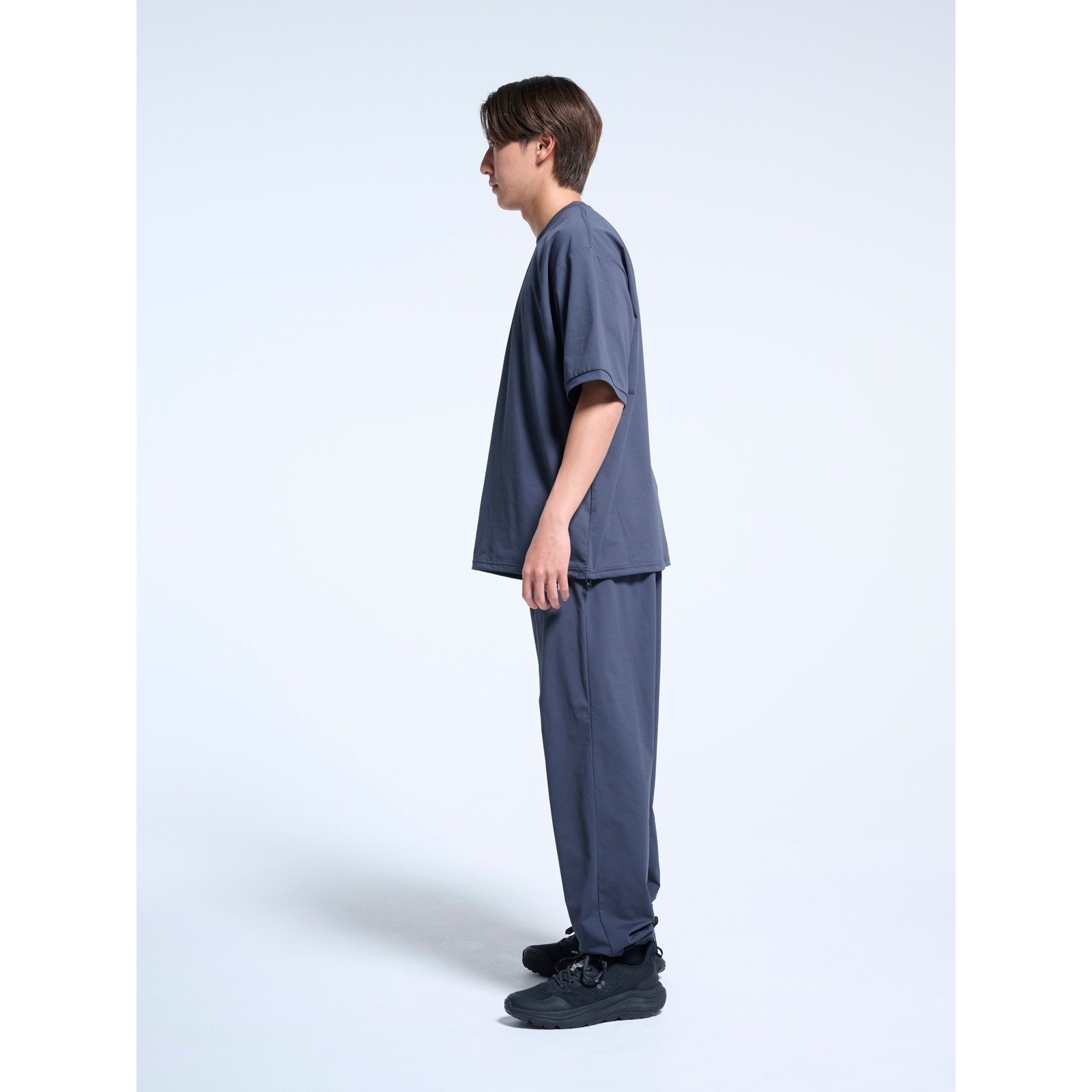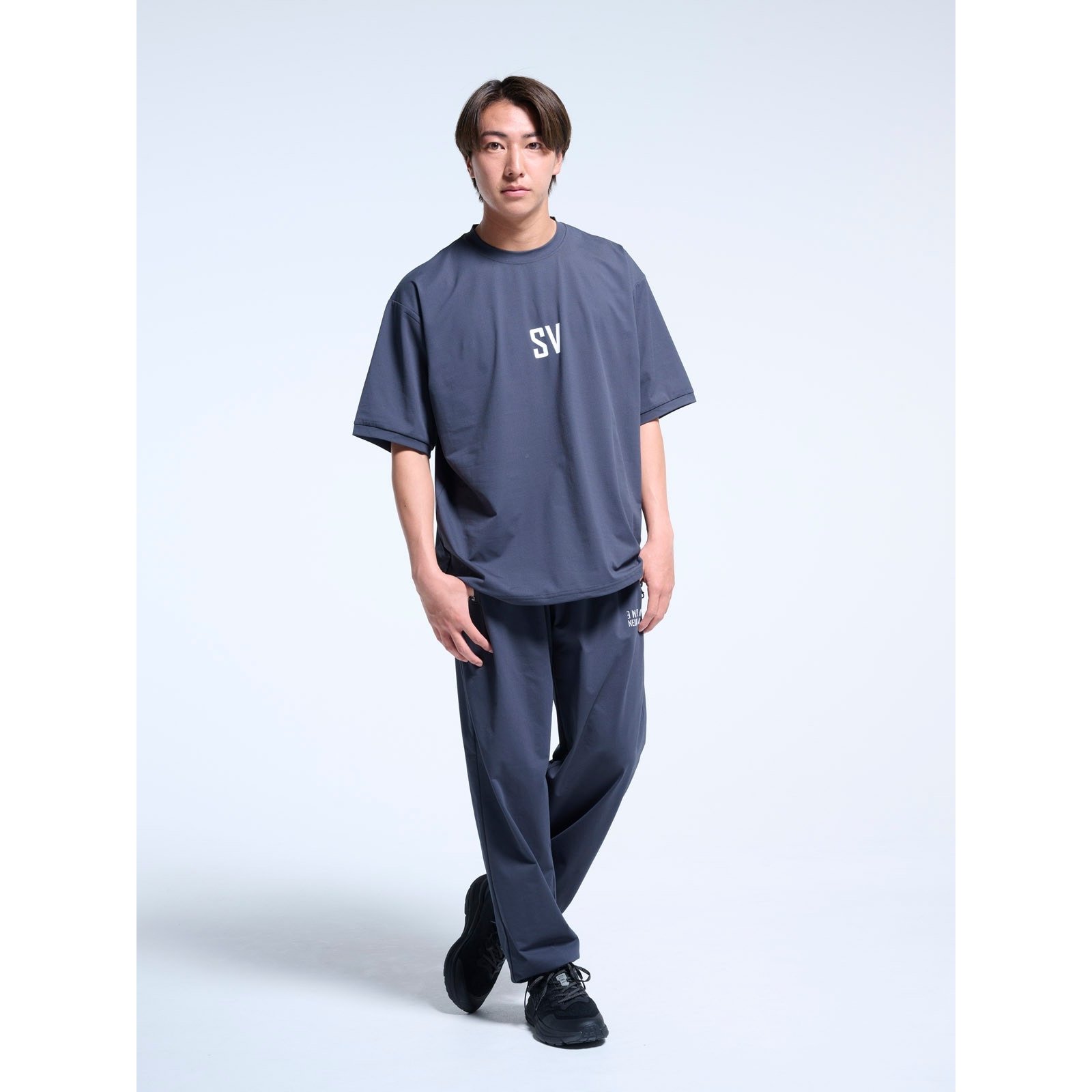 裾のドローコードでシルエットの調整が可能。胸にシンプルなSVロゴを配した、着心地最高のワイドシルエットTシャツ。