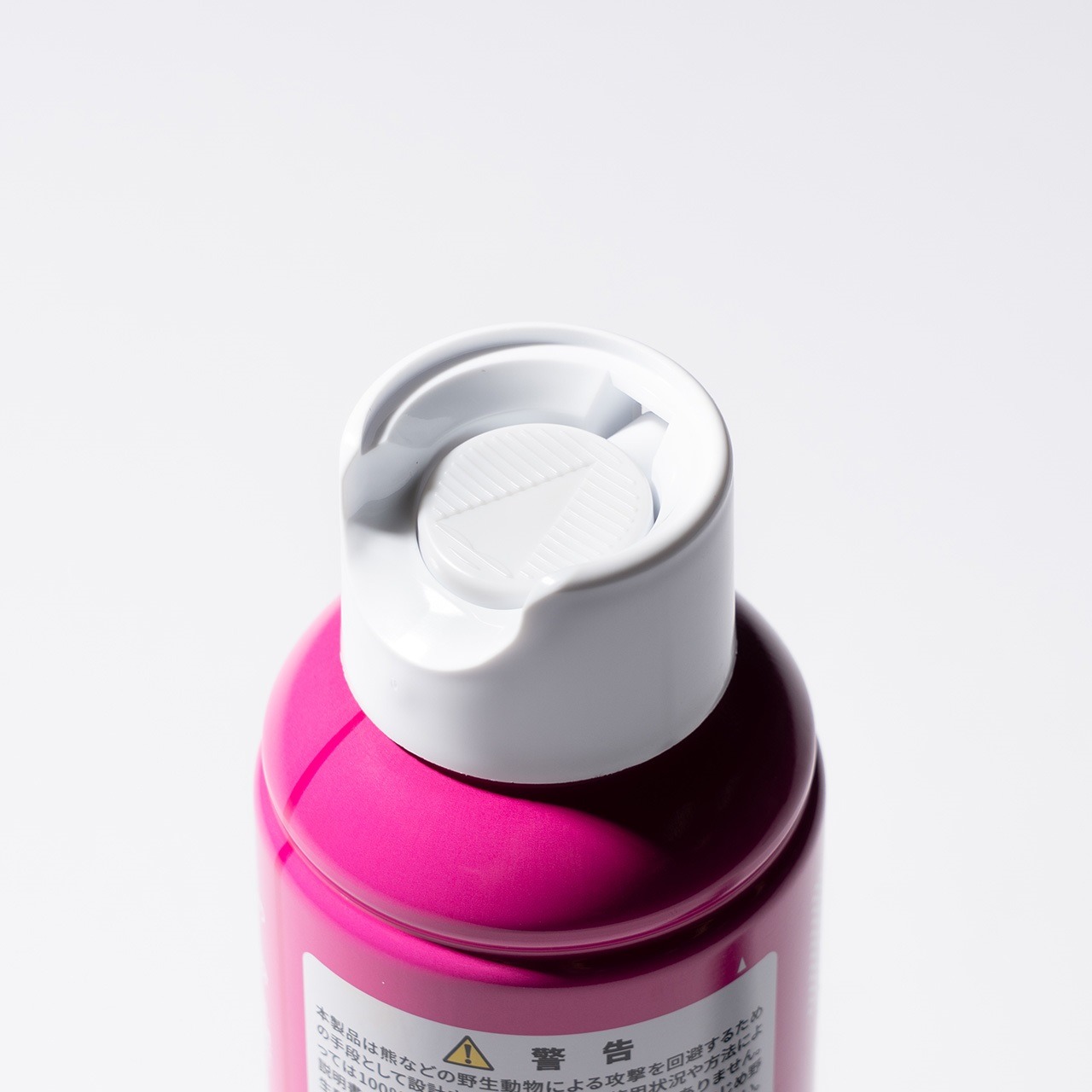成分・飛距離・噴射時間・使用期限などの諸スペックは海外ブランド製品と同レベル以上を確保し、国内外の各種安全基準も満たしています。さらにスプレーノズルは緊急時でも咄嗟に噴出しやすいユニバーサルデザイン形状です。