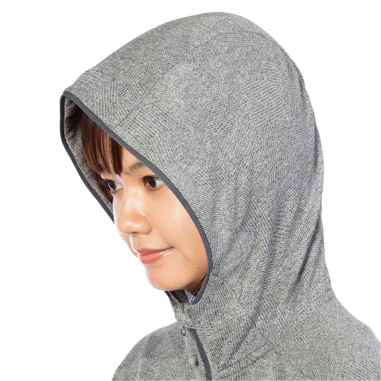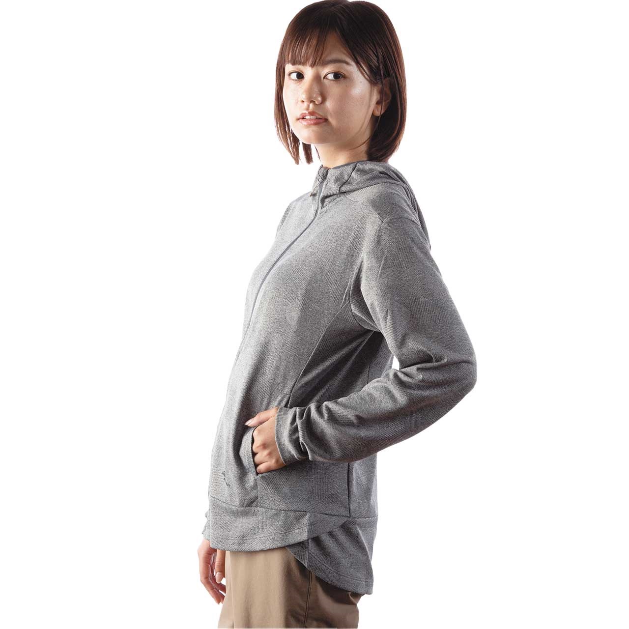 - 防虫、吸汗速乾、UVカット機能を持つトランスウェット・スコーロン素材のフルジップフーディ。