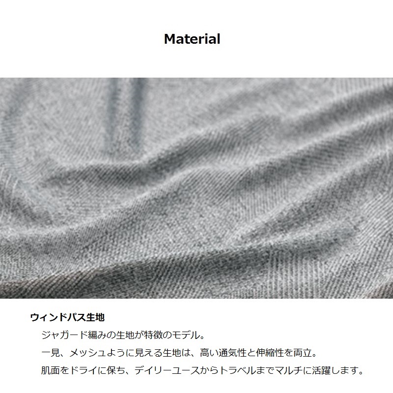 薄く軽量なジャカード編みの生地で、細かな隙間により通気性にも優れています。