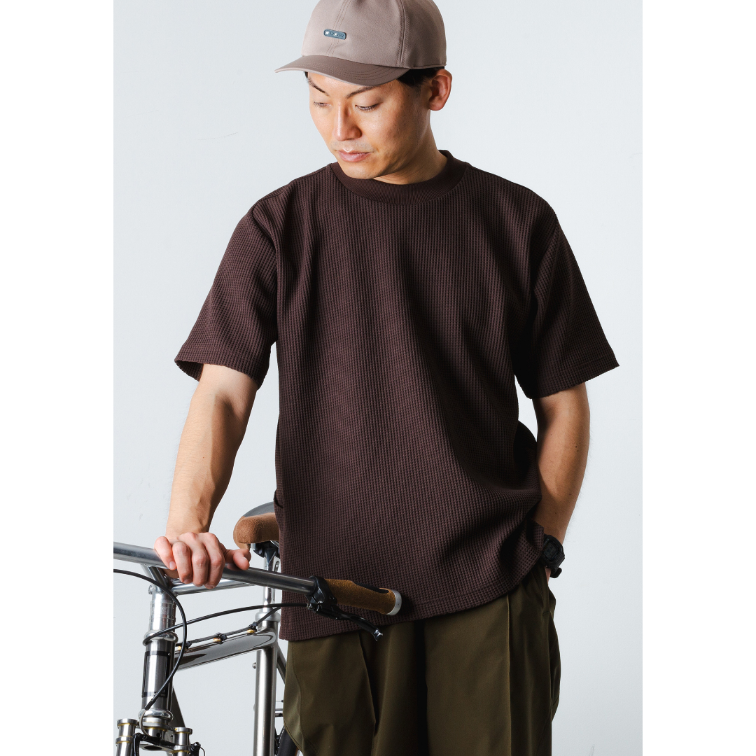 凹凸のあるワッフル組織により無地ながら存在感のある雰囲気に仕上がっており、一般的なTシャツと差別化を図っています。