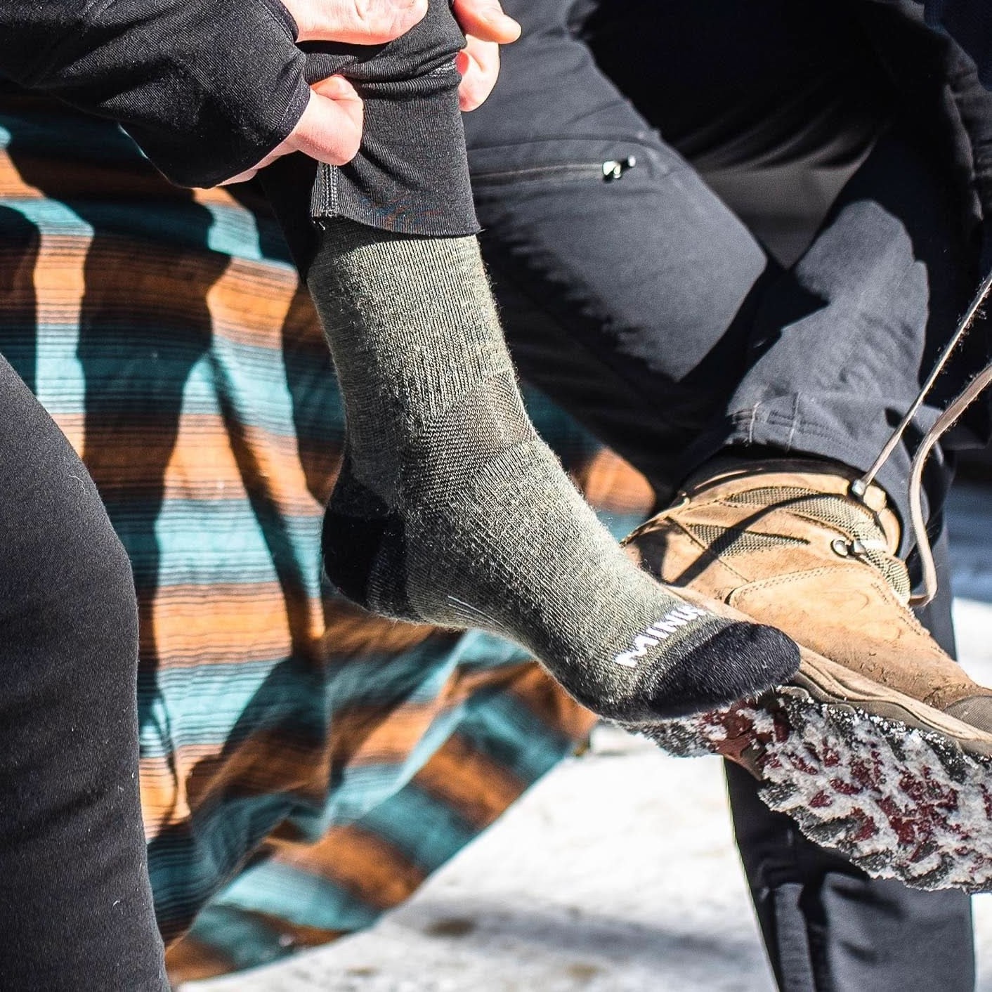ミニクルーソックスと同様に、このメリノウールソックスは、ソックス全体にクッション材をたっぷり詰め込んでいますが、少し丈が長めになっています。もう少し丈のあるソックスが必要な日には、このクルーソックスが最適です。最高のクッション性と優れた機能性を備え、寒い気温や過酷な環境にも耐えます。