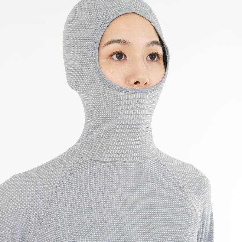 メリノウールの天然の快適性と、最先端の編立技術による優れた機能性を兼ね備えた、軽量で快適なフード付きベースレイヤー。