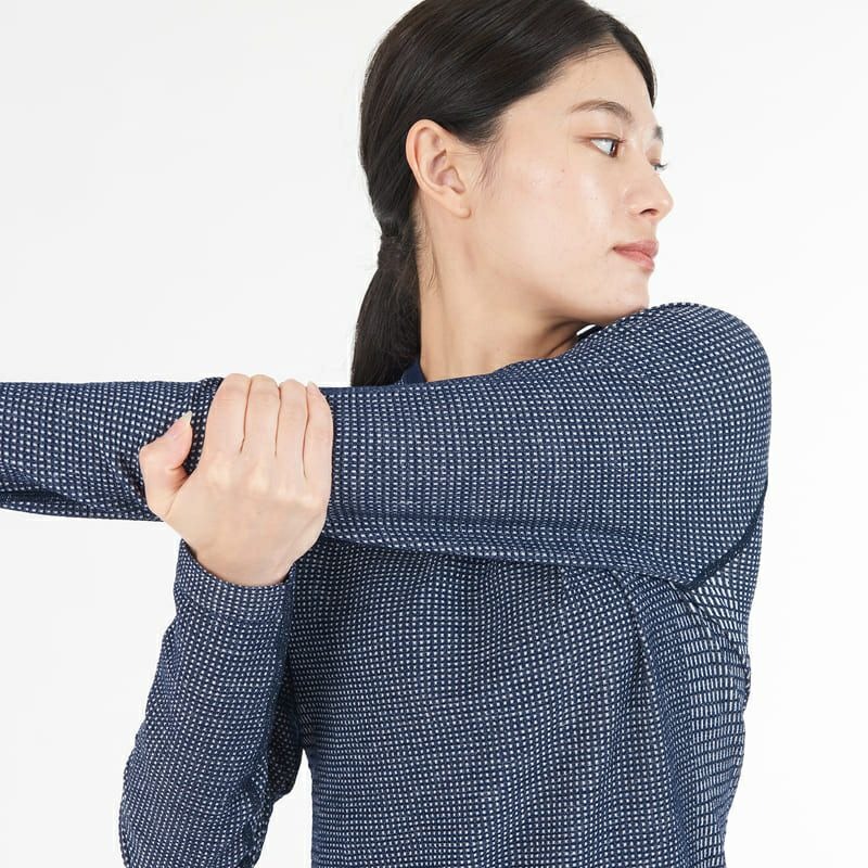 さらに、運動性の高いラグランスリーブ、脇腹部分は通気性と横方向の伸縮性を、身頃や肩・袖は絶妙なフィット感を提供するよう計算された編み方にすることで幅広いシーンやアクティビティにおける本当の快適さを細部まで突き詰めています。