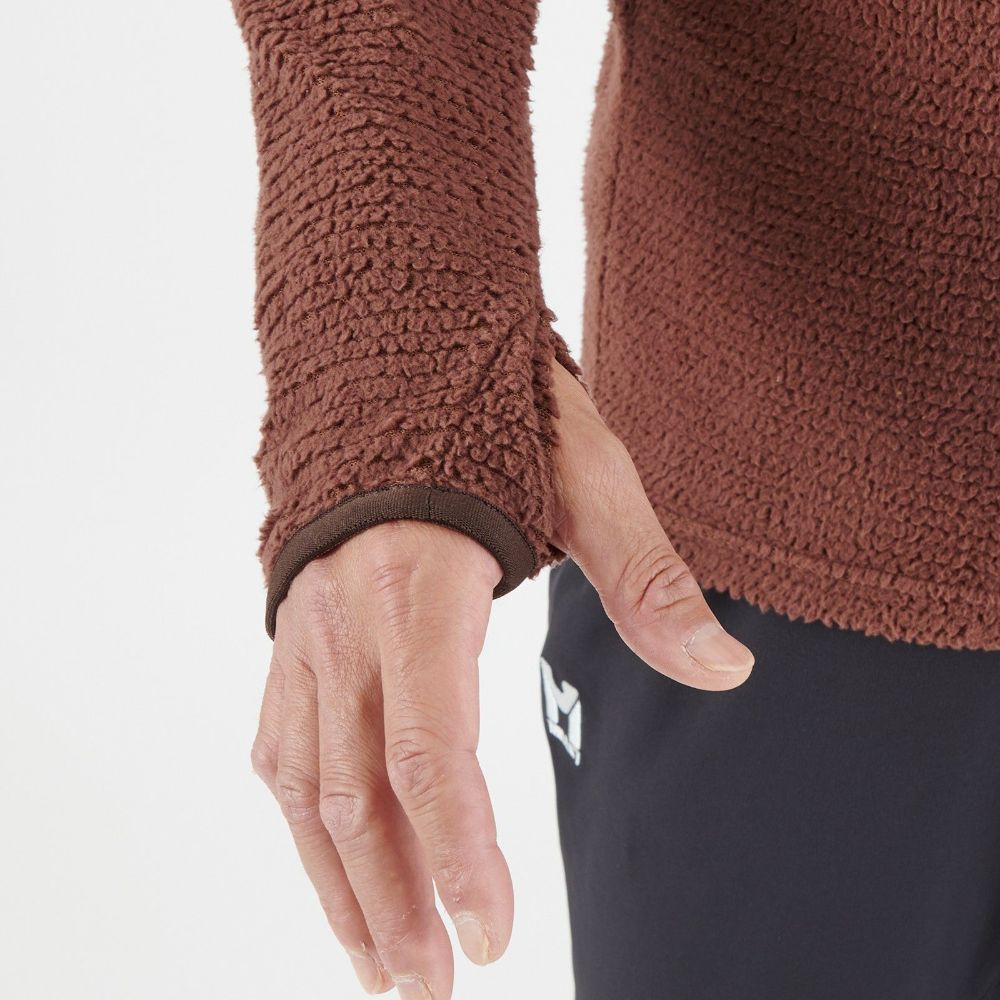 独自のメッシュ構造で編立した薄手の起毛素材「スルーウォーム®」を採用したアクティブインシュレーションフーディ。
