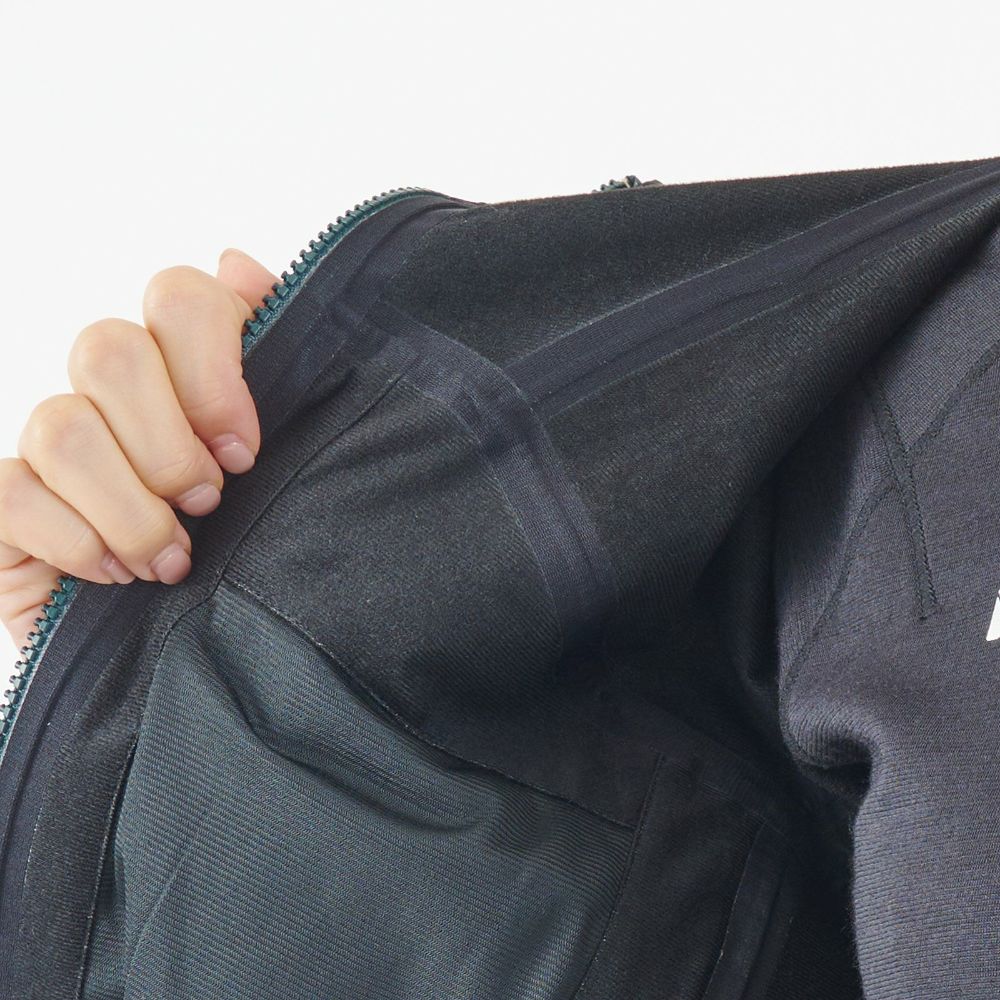 - 優れたプロテクションと柔らかな着心地を備えた裏起毛の防水透湿シェルジャケット