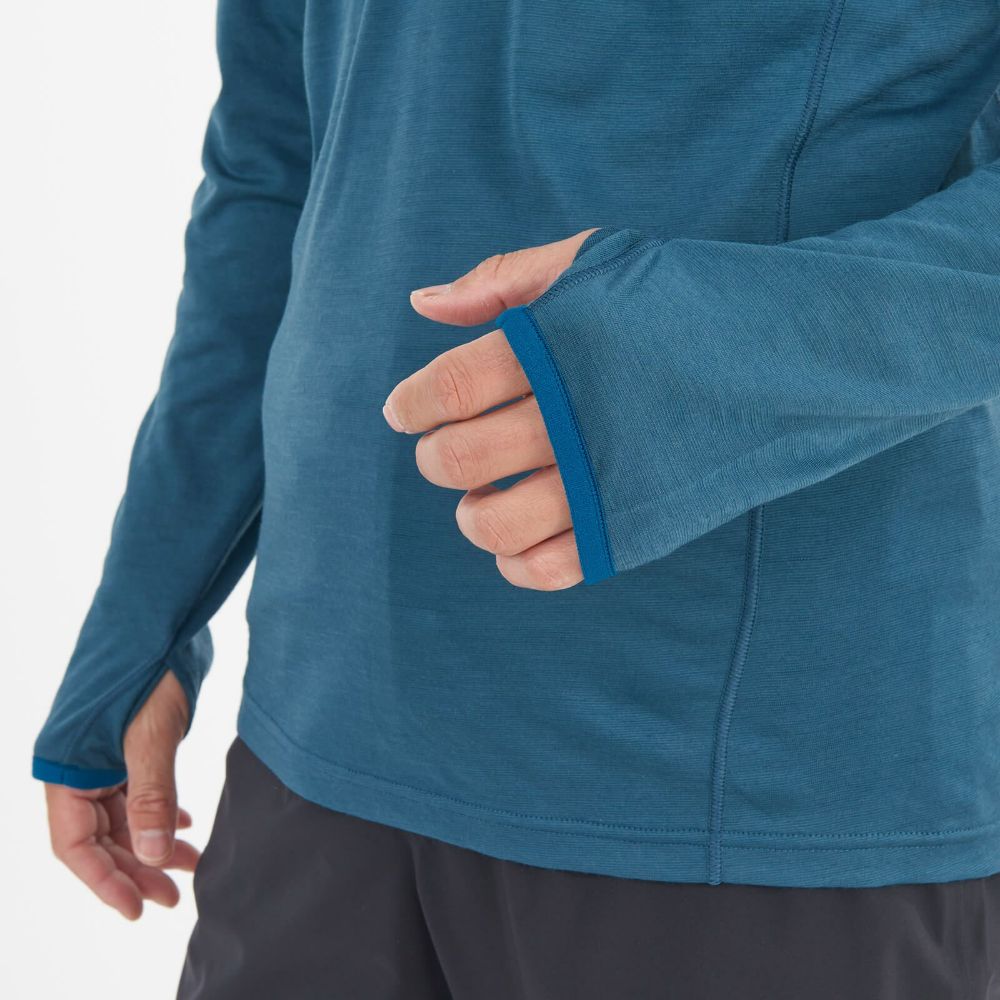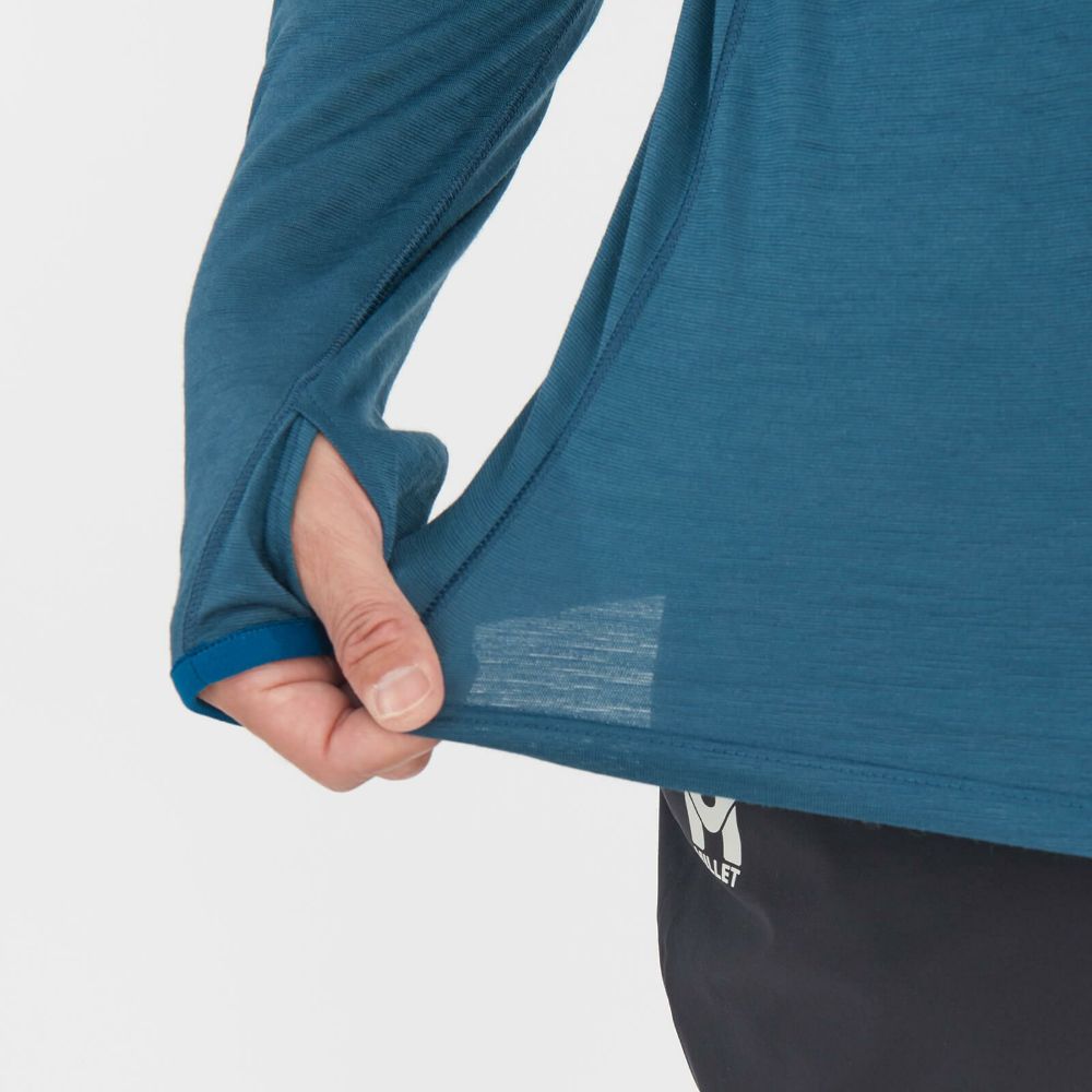 トレッキングからアルパインクライミングまで幅広いアウトドアアクティビティに対応する、ロングスリーブの快適ベースレイヤー。リサイクルポリエステルの速乾性と耐久性、メリノウールの自然な着心地のよさ、天然の保温、調湿、防臭性など、双方のメリットを合わせもったウール混紡素材を採用。さらに動きやすさとリュックとの干渉を考慮した巧みなカッティングによって、長時間の登山やハイキングでのストレスを軽減し、山岳での快適な行動を最大限サポートします。発汗時にジッパーを大きく開けて換気性を高めることができるハーフジップタイプ。