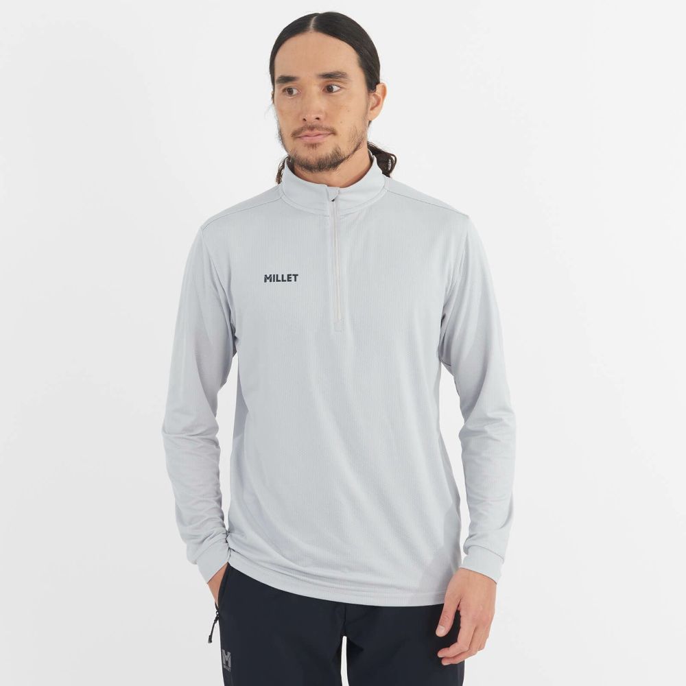 - いやな虫を遠ざけ、ドライな触感と優れた吸水速乾性を備えたハーフジップ長袖Tシャツ