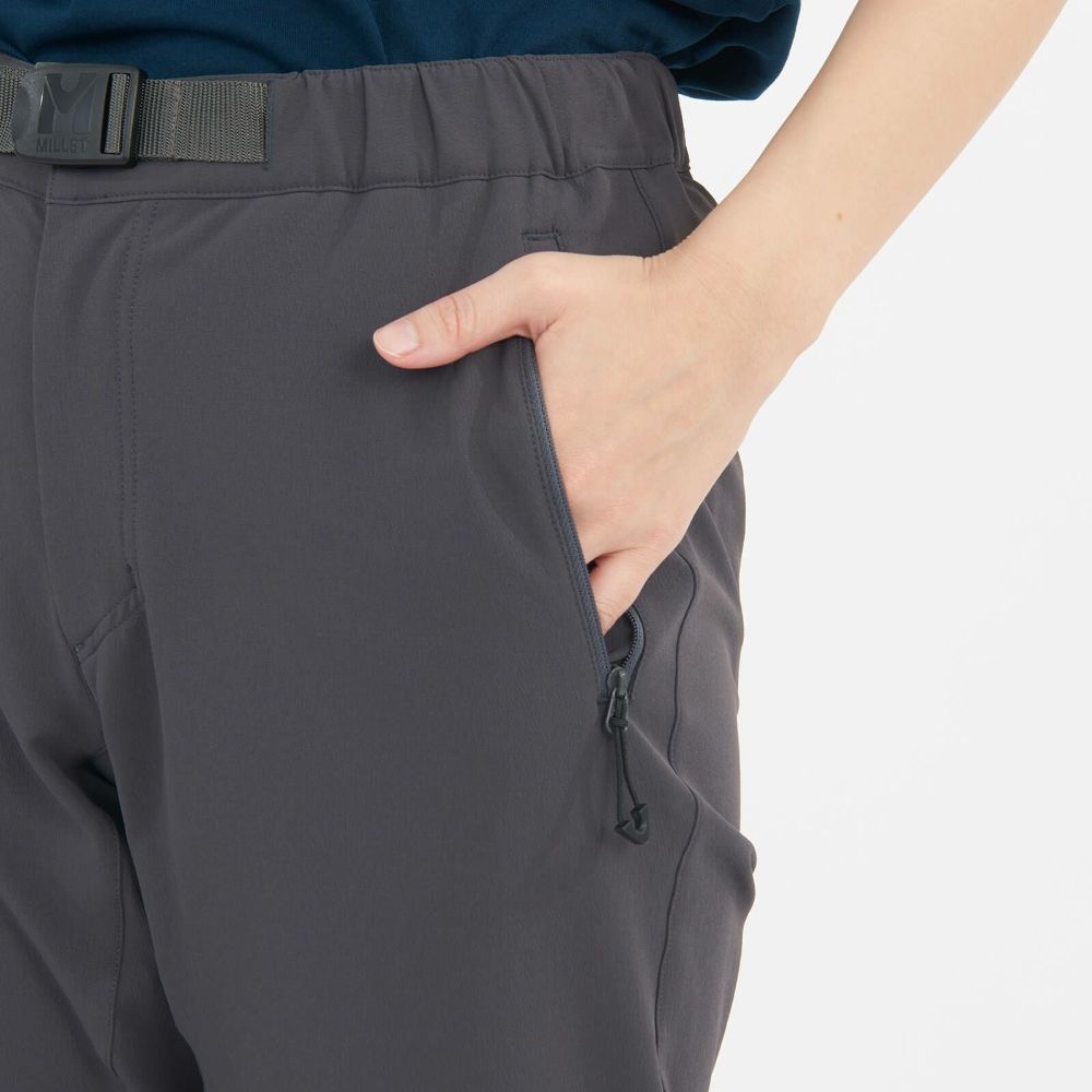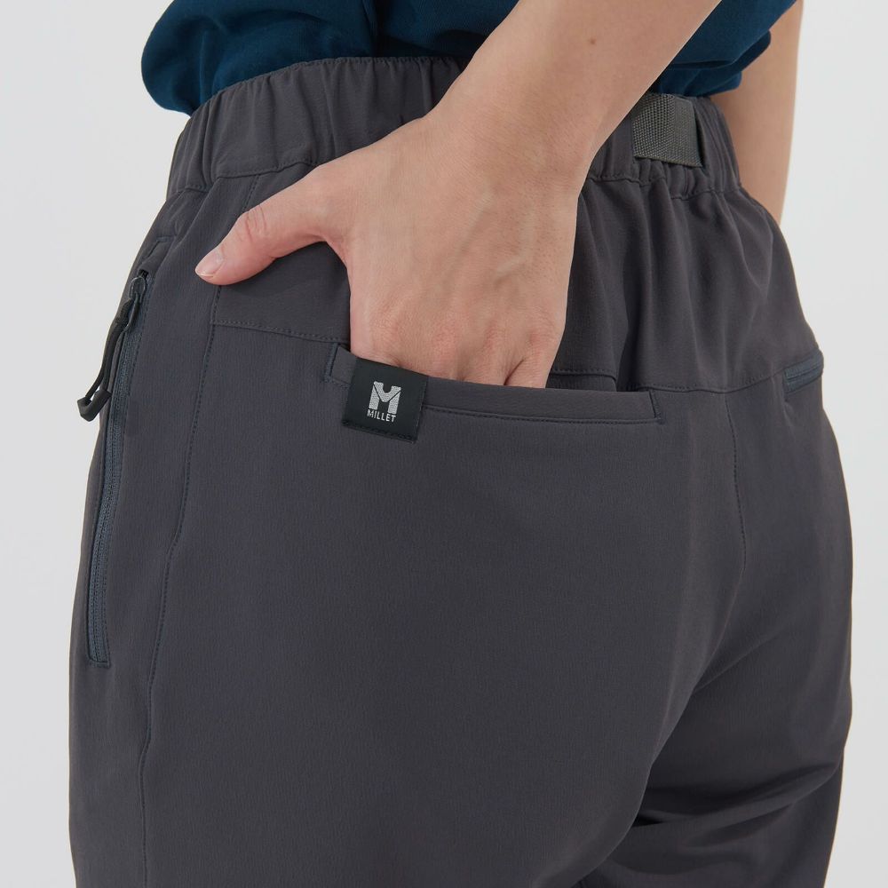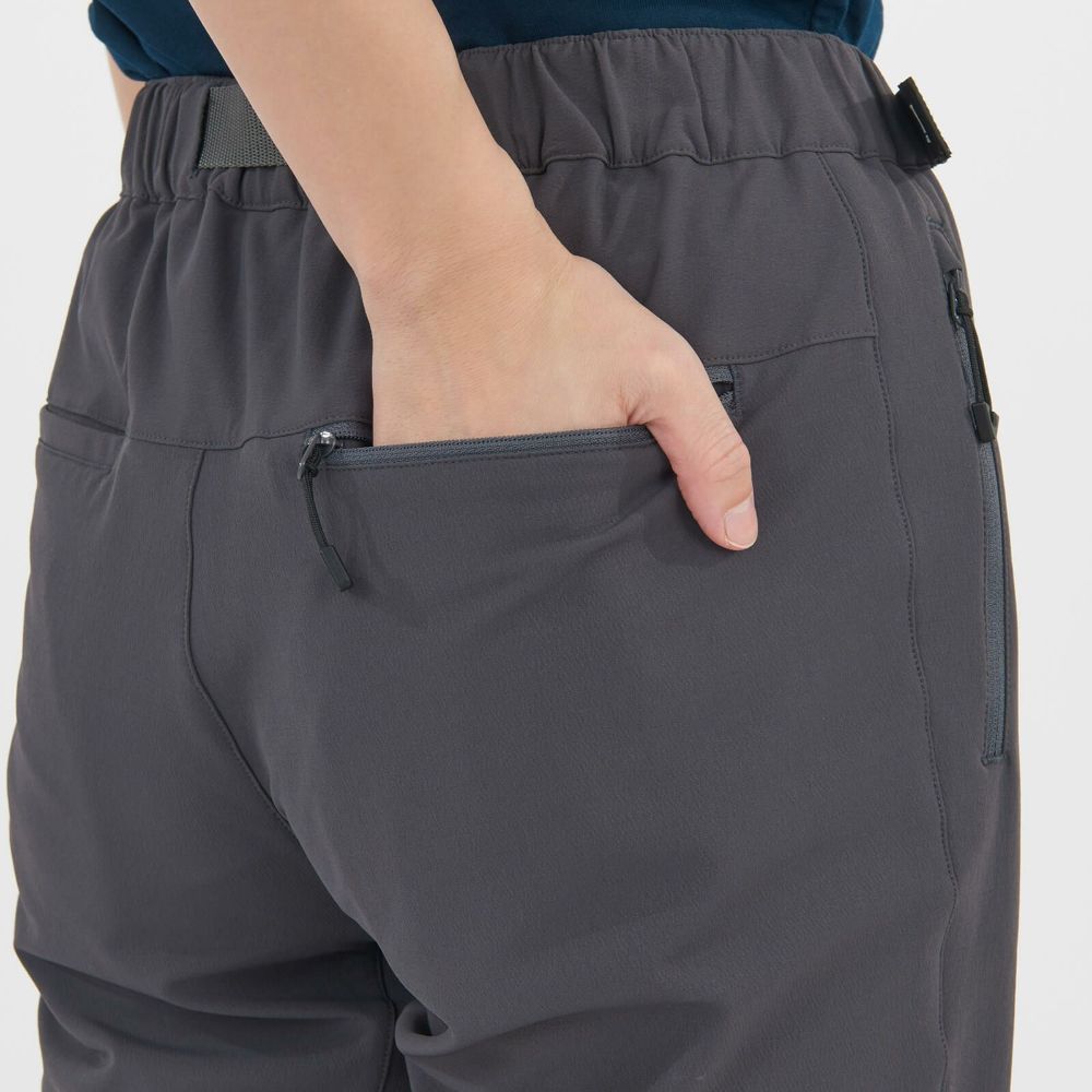 アウトドアに適した生地を使い、裾に向かってシェイプされたスリムフィットの定番トレッキングパンツ。細身ながら運動性を重視し、ストレッチ素材で動きやすさを確保。 肌離れのよい裏面グリッド調の二重織生地を採用し、汗をかいても快適に着用していられます。ハンドジップポケットとバックに2つのポケット(内1つはジップポケット)を備えています。