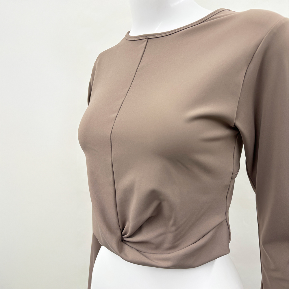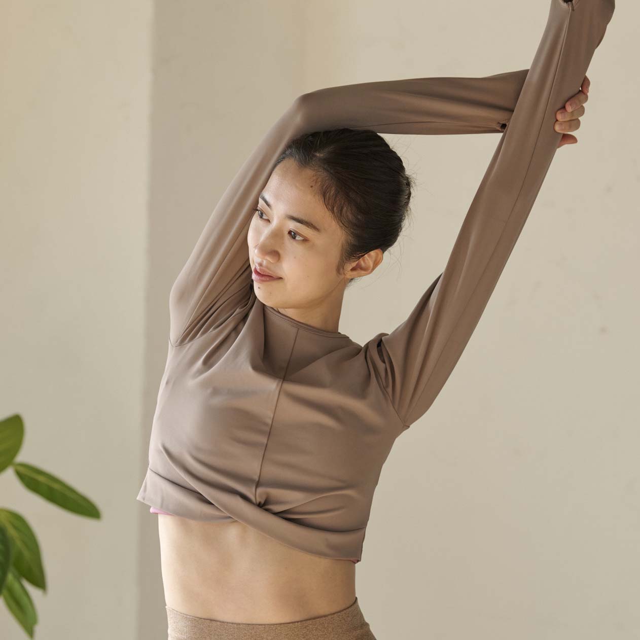 【クリアランス】 サイドシャーリング長袖Tシャツ / ベージュ 831-4061