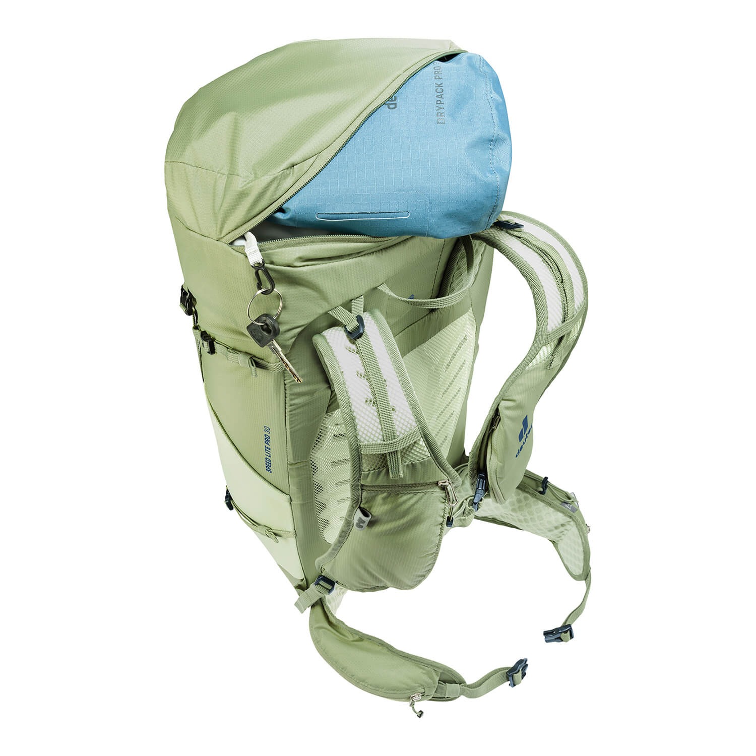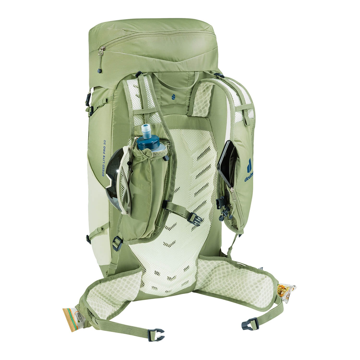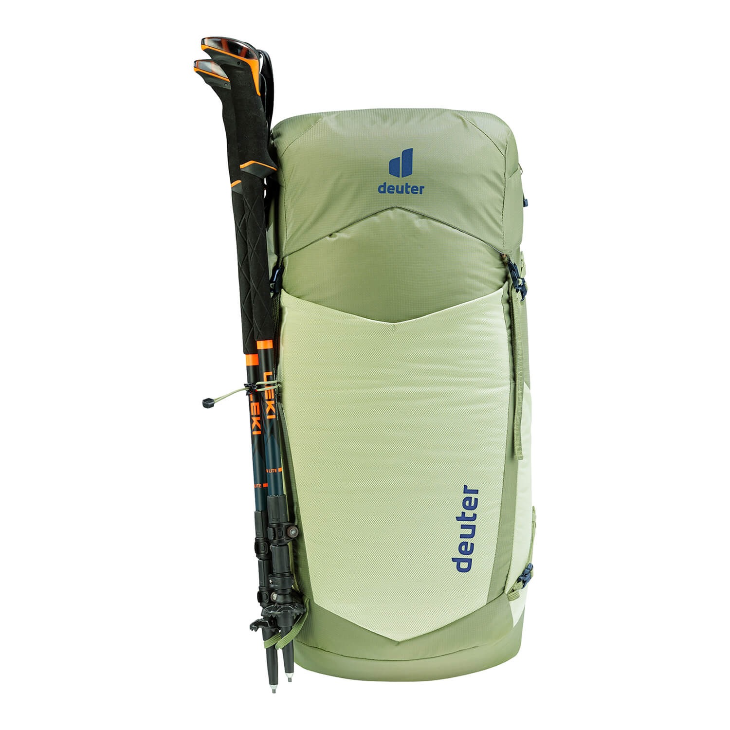 - 背負ったときの荷重がバランスよくしっかりと腰へ伝わり、背面の通気性を保ちながらも高いフィット感を得られる新たな背面パネルを用いた軽量パックです。ファスナーポケットを設けたショルダーストラップには柔らかく、軽量で通気性に優れたエアメッシュを採用しています。装備を背負い歩いたときに快適さを得られるか否かは素材の軽さだけではないと考えるドイターの哲学が具現化したモデルです。