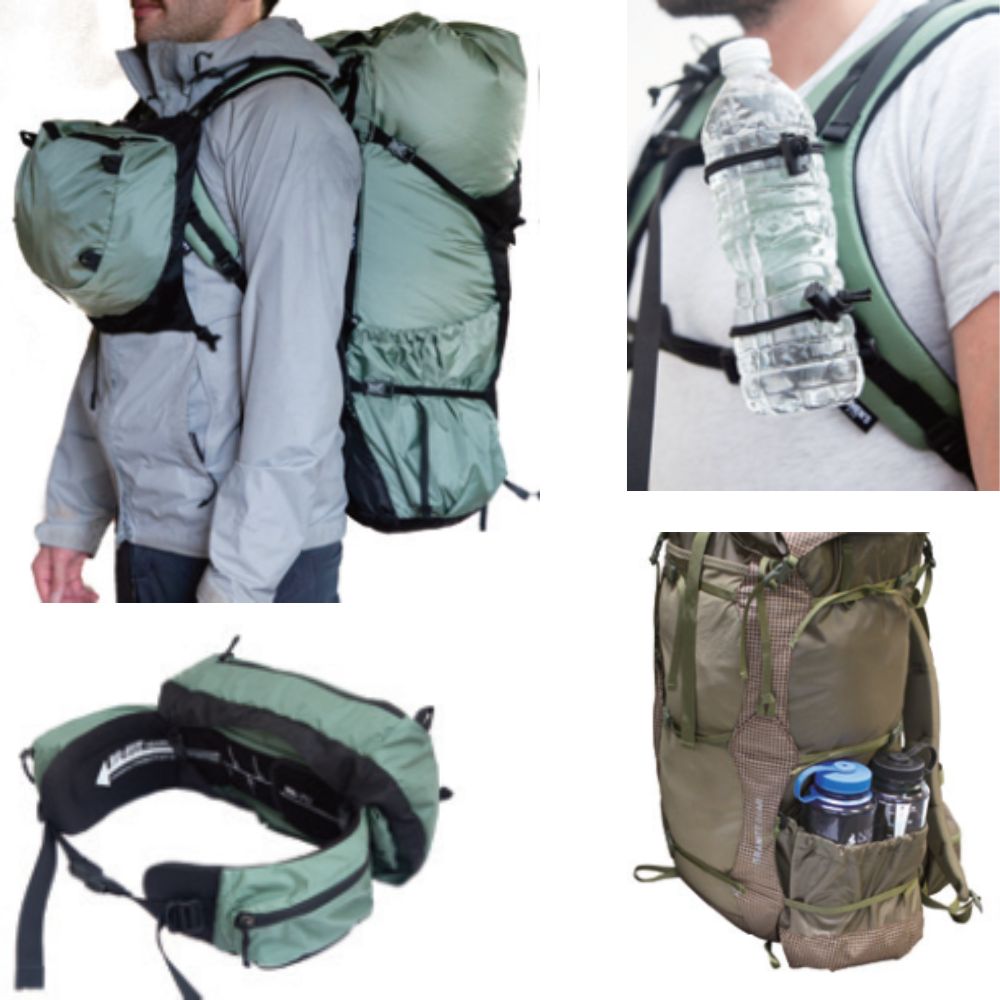 ULトレッキングから長期縦走までトレッキングスタイルに基づいてリッドを外して使用したりウェストベルトと組み合わせてヒップパックにしたりご自分のスタイルに合わせてカスタマイズ出来るオプションが備わっています。