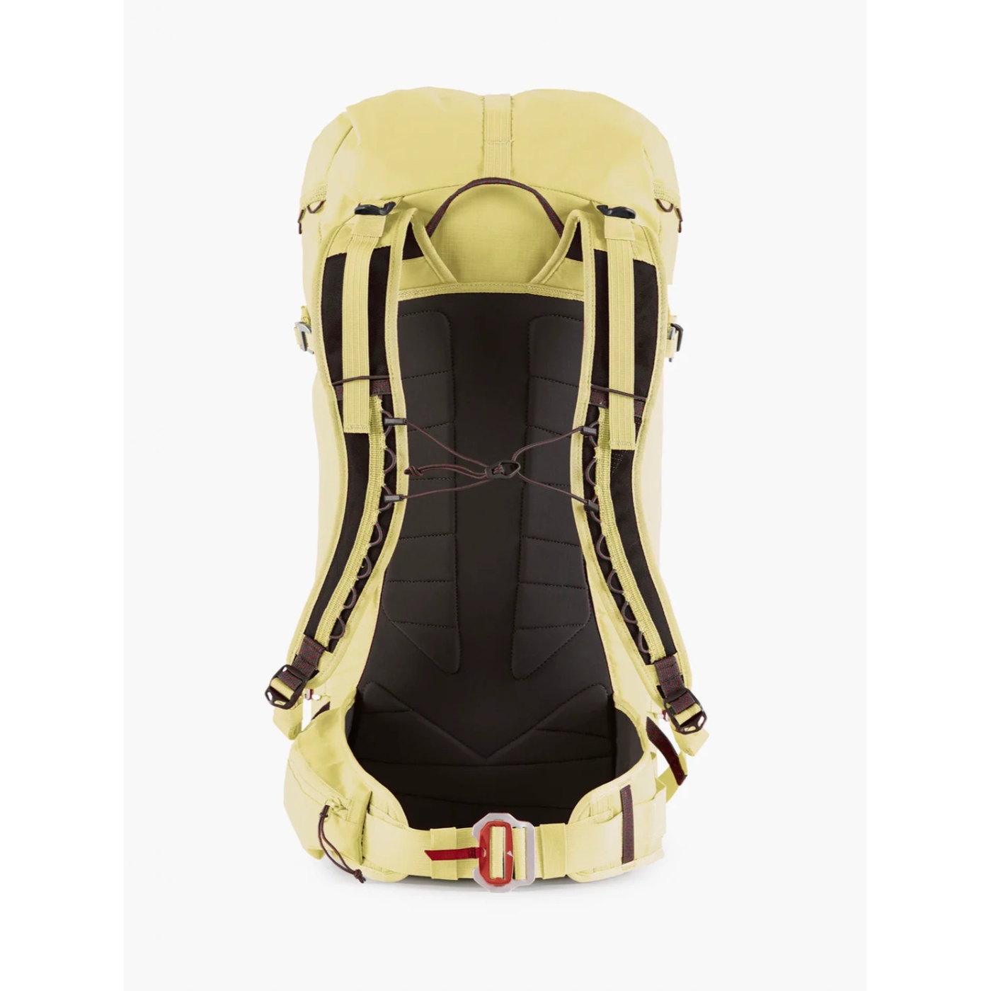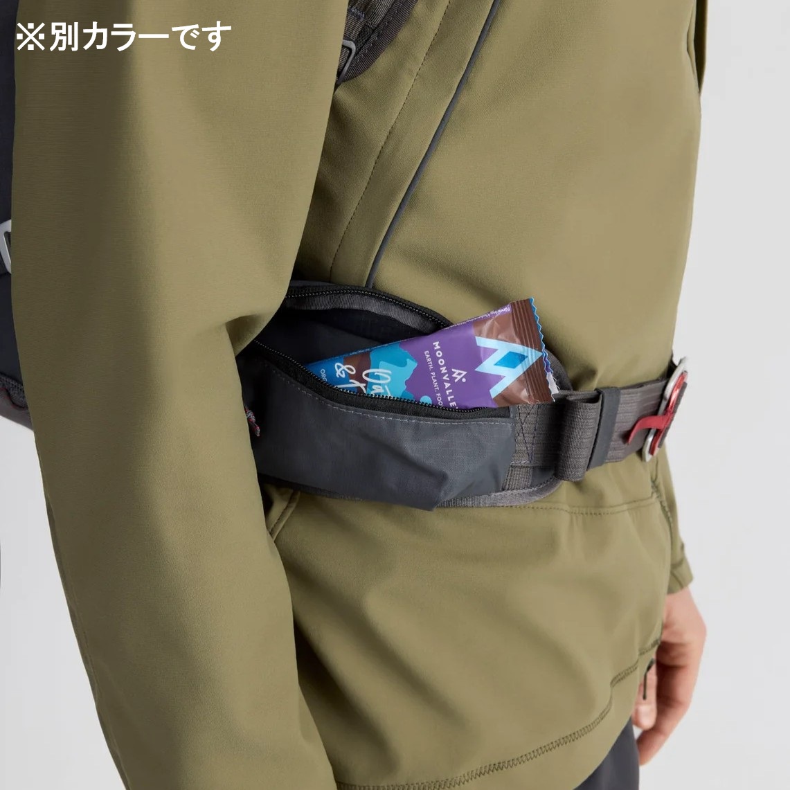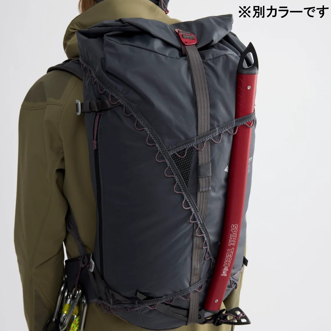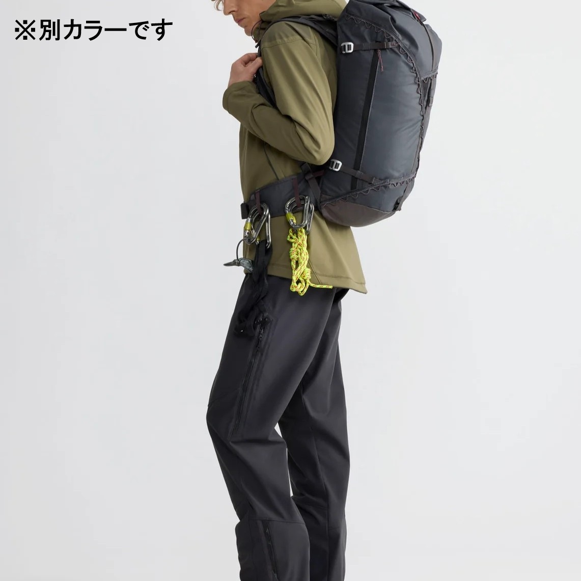 バックパックの外側にあるループウェビングは、スキーポールやピッケルなどの装備の取り付けを容易にします。S字型のショルダーストラップは激し動きにも邪魔にならず、最大限の動きを可能にしています。バックパックのバックプレートを取り外すことで、さらに軽量化を図ることが可能。