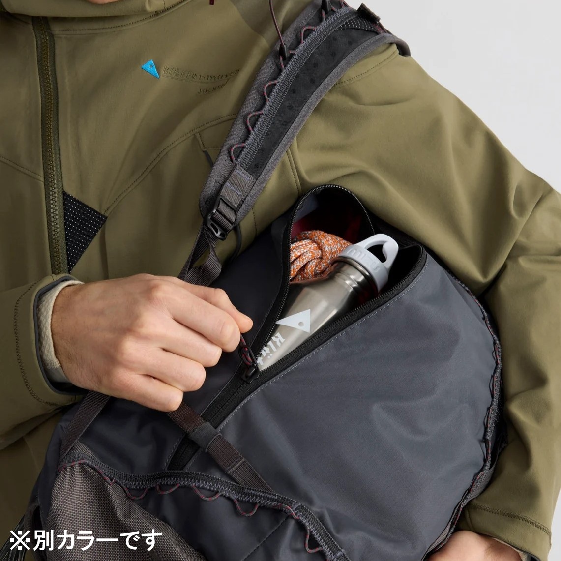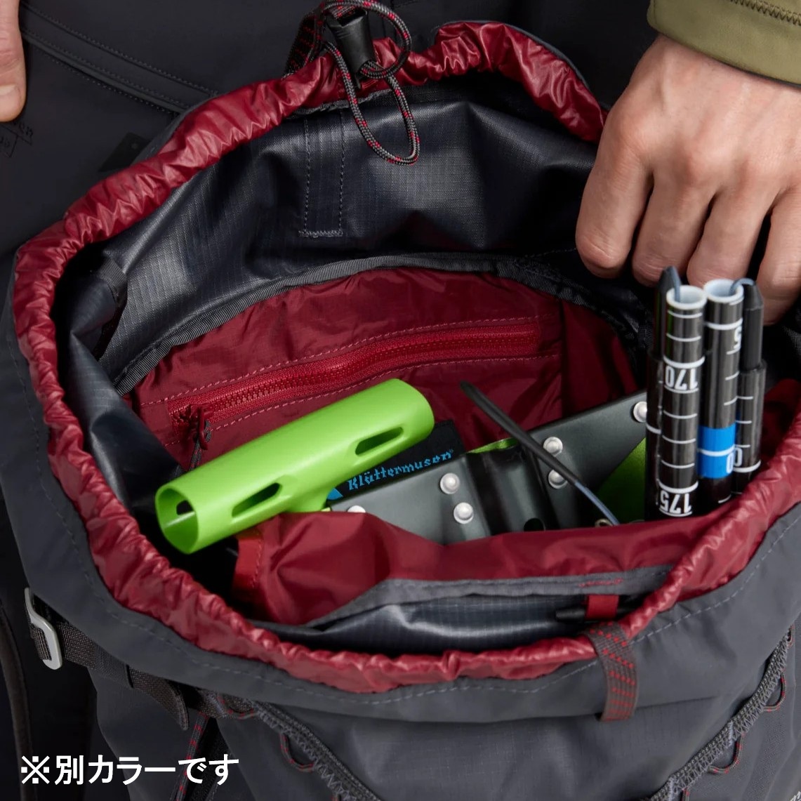 オリジナルの 210 デニールリップストップ生地は、耐水圧 10,000mm の防水性を誇ります。ドローコードで開閉するシンプルな構造でありながら、あらゆる装備を装着することが可能。ワンロールトップのバックパックはアクティビティに応じてコンプレッションが可能なため、さまざまなシチュエーションに対応することができます。メインコンパートメントには、サイドジッパーからアクセスすることも可能。バックパックの内側にはアバランチ用の安全ポケットが付いており、ギアの整理にも重宝。