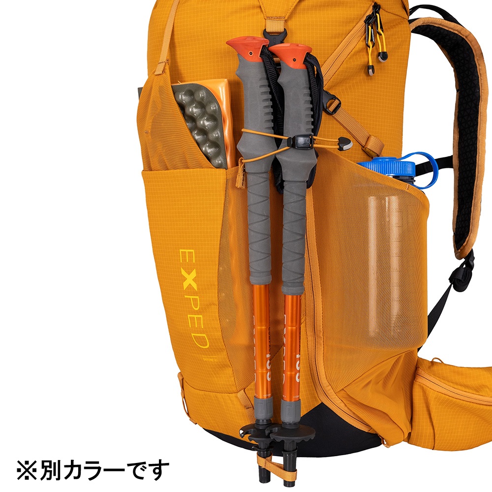エアフローシステムは柔軟性があり、着用者の背中が自然に動くようになっています30Lと45Lのモデルには、より重い荷物を運ぶ想定で軽量スチールフレームが入っていて、背面長の長さが調節可能になっている。