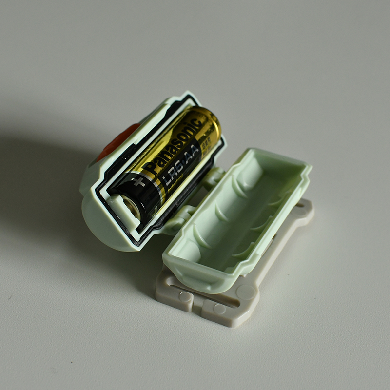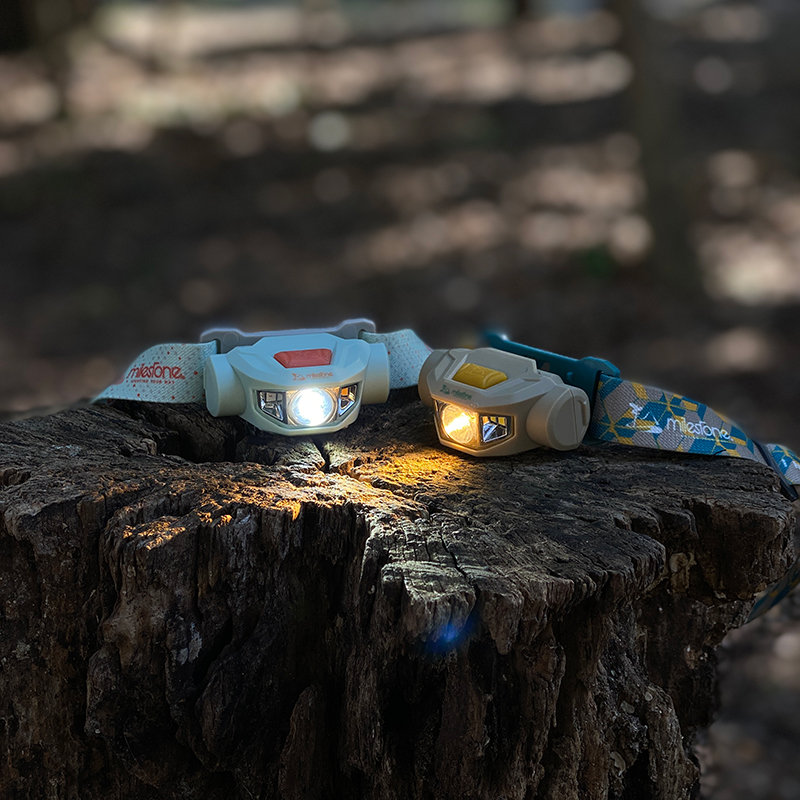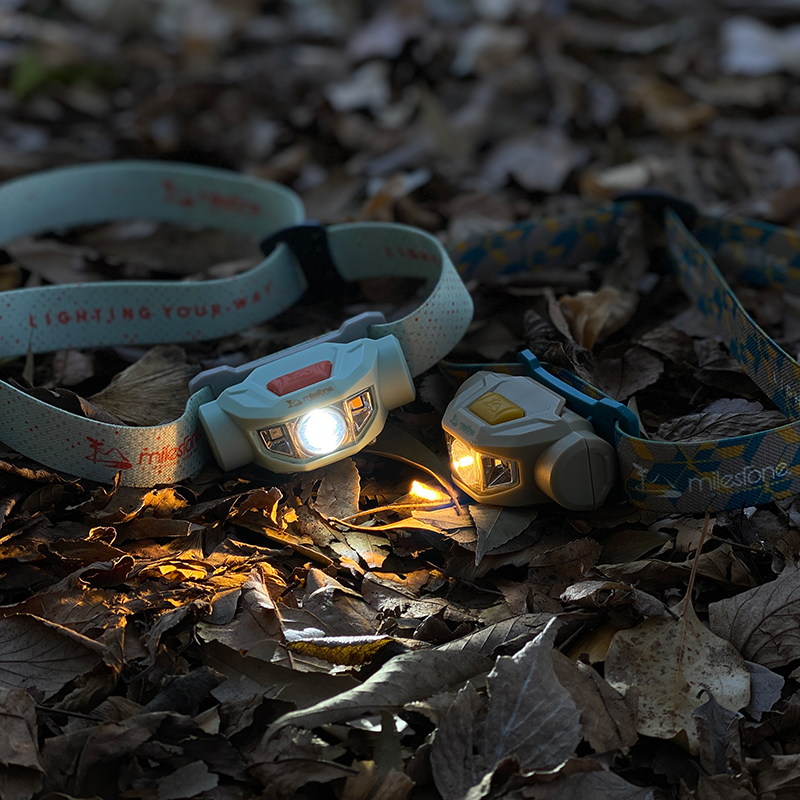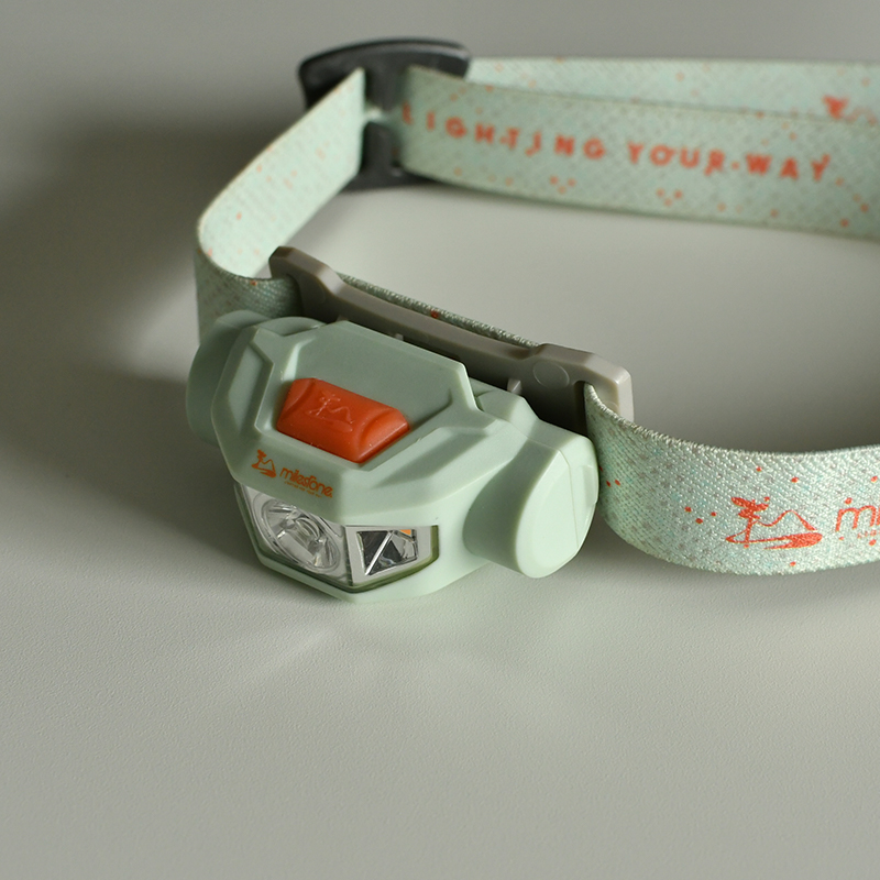 単3乾電池×1本で稼働する超軽量、コンパクトヘッドランプ。明るさ最大200ルーメンを誇る白色LEDをメインに、サブLEDには電球色、赤色LEDを搭載。