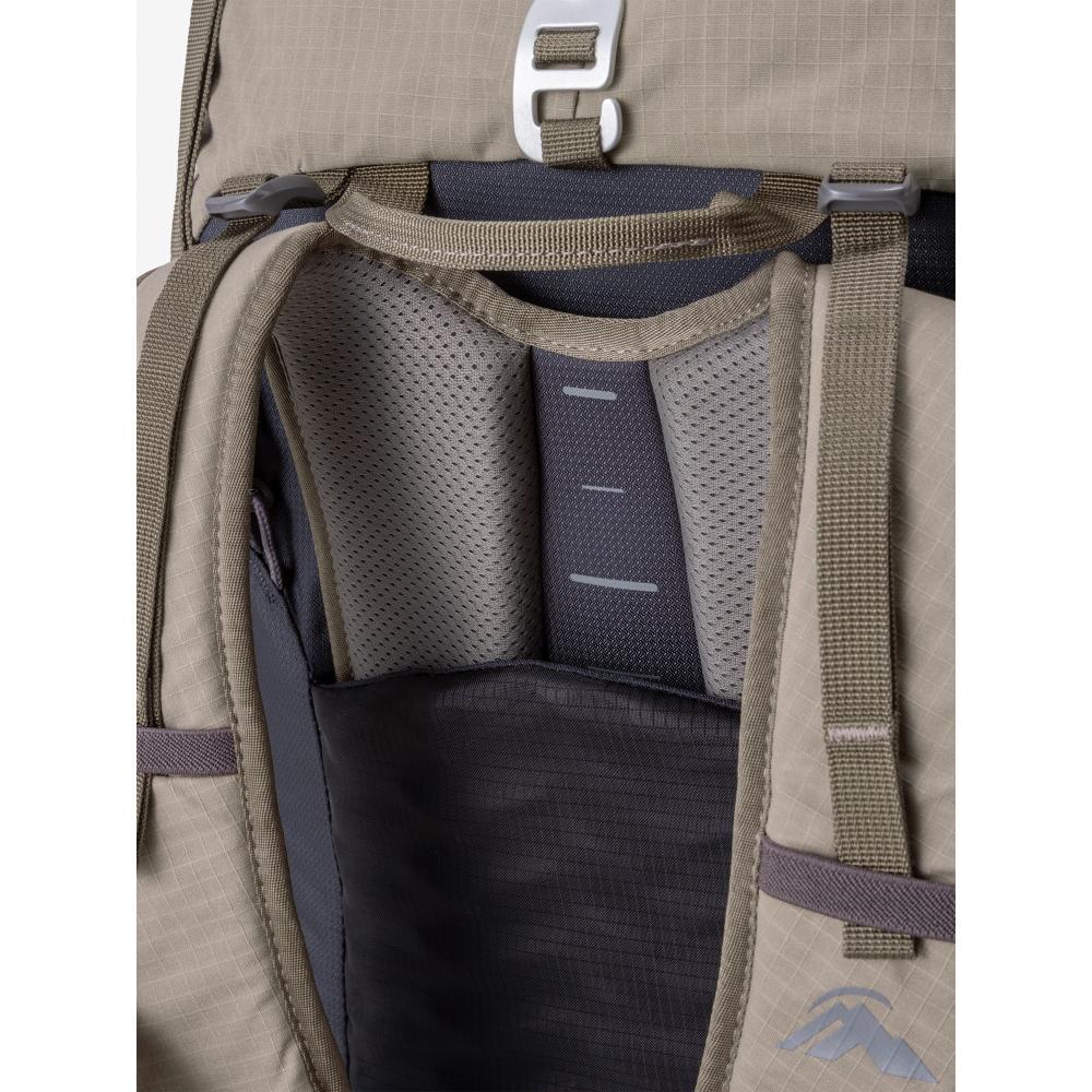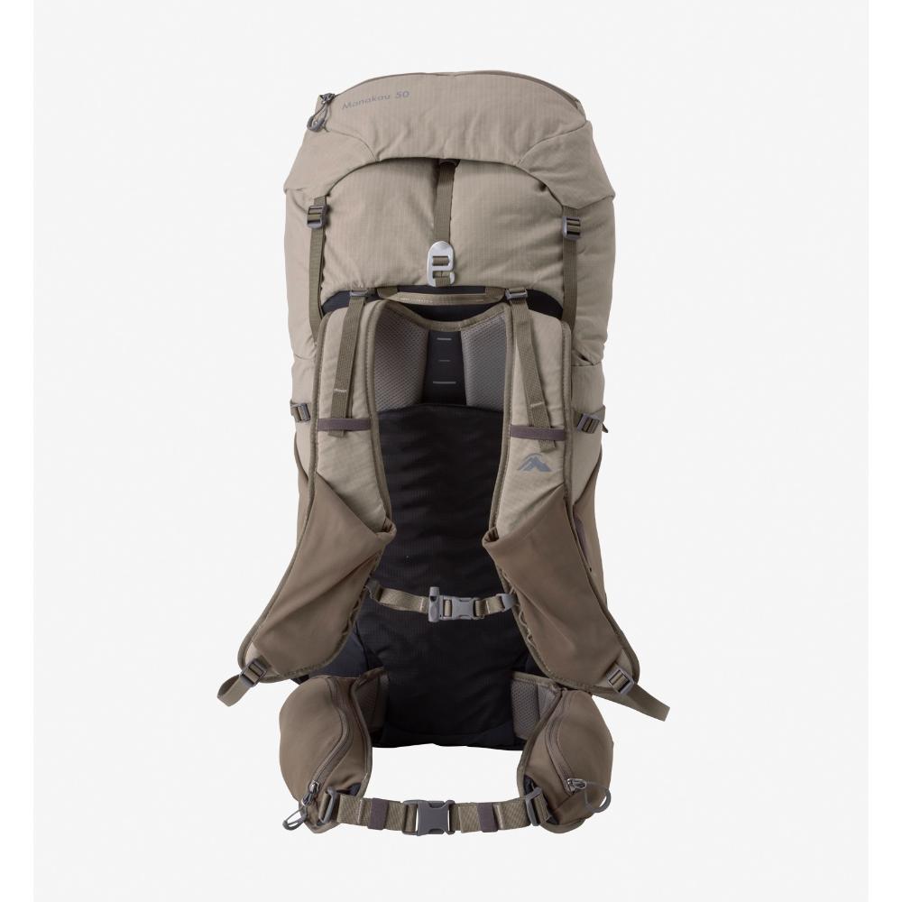 素材には耐久性と軽さを両立した「AzTec6oz」を採用し、容量50Lながら本体重量は約1,360g。背面の波型フォームバックパネルは体にフィットしながら通気性をもたらし、快適な背負い心地が持続します。背面長は、面ファスナーで調節可能。