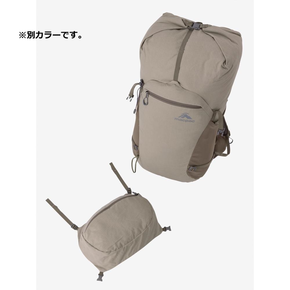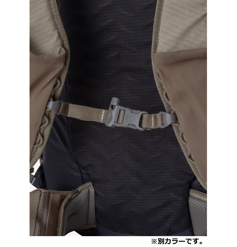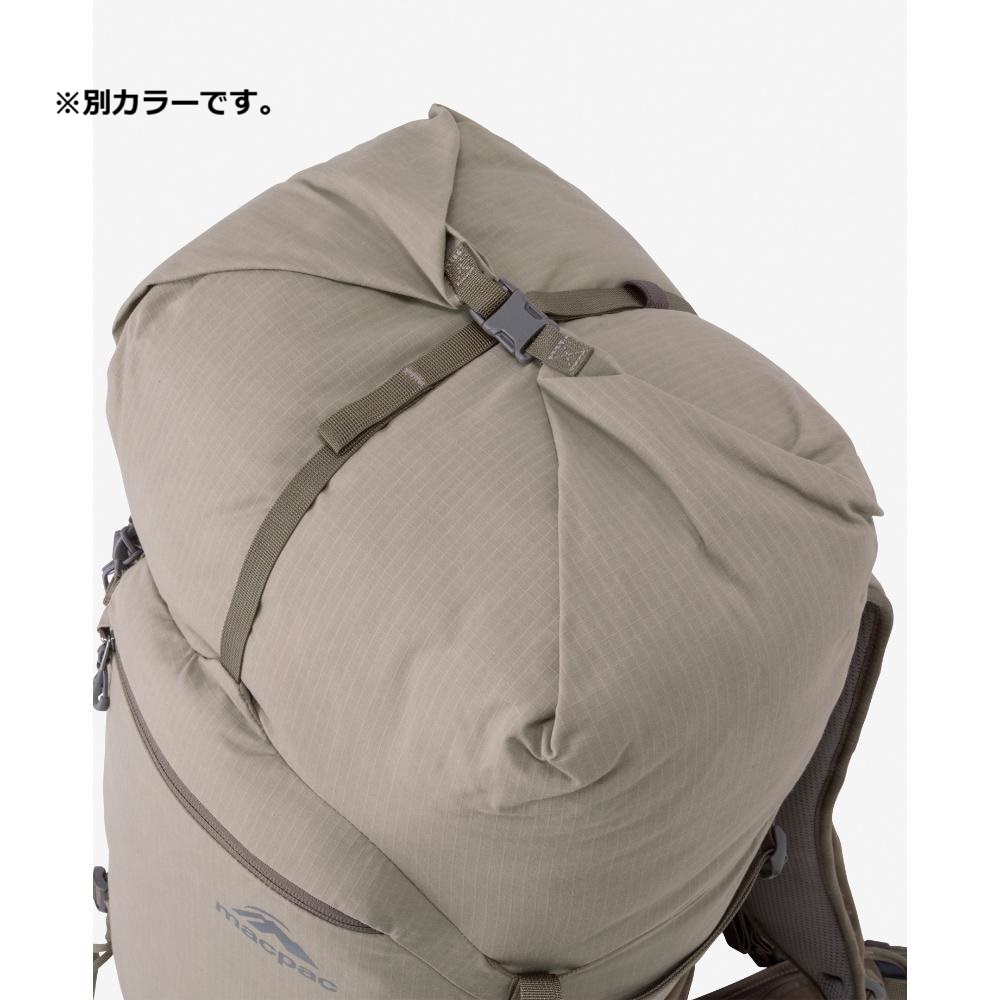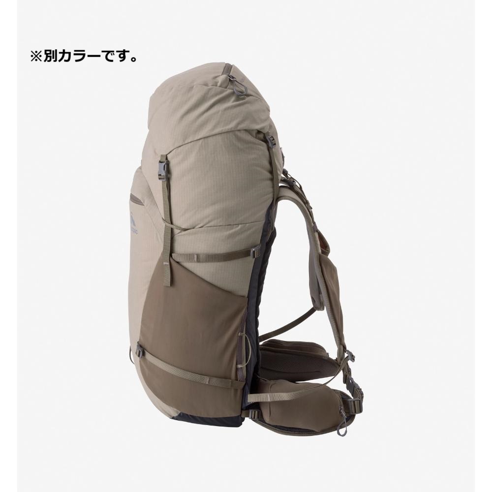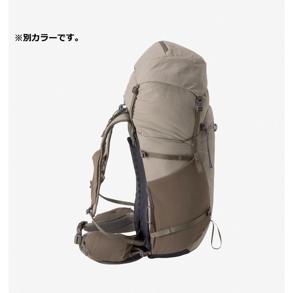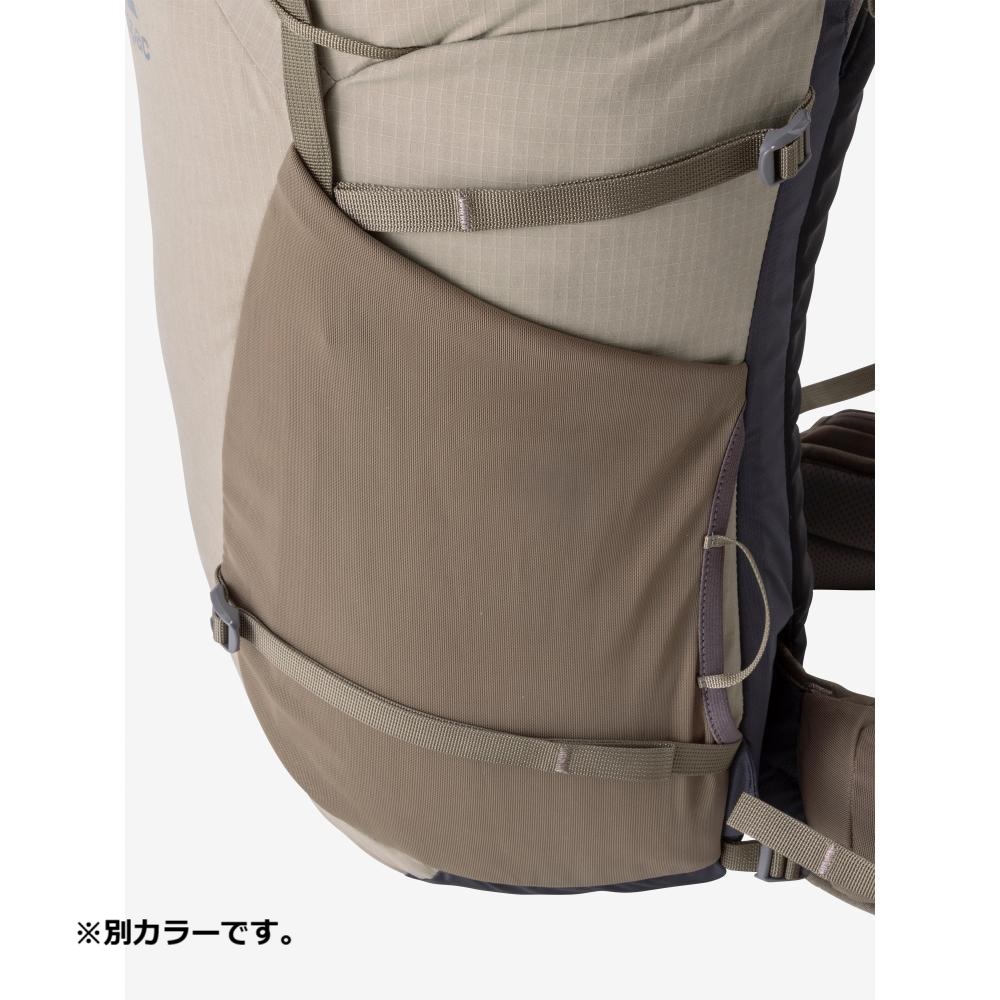 本体は取り外し可能な雨蓋を備え、ロールトップオープニングで本体内部へアクセスします。トップリッド、ウエストベルト、内部のアルミフレームは取り外し可能で、様々なスタイルに合わせられます。小物の収納に便利なフロントのファスナーポケット、トレッキングポールなど長物の収納に対応するサイドメッシュポケット、ほとんどの500mlボトルを収納できるショルダーハーネスのメッシュポケットなど充実の収納力。縦走登山やロングトレイルなど長期の山行に活躍する大型バックパックです。