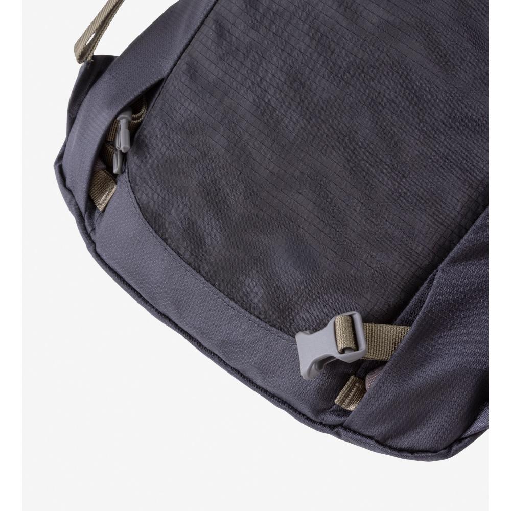 本体は、スムーズに収納できるロールトップオープニング。ウェビングウエストベルトは、スタイルに合わせて背面のスリットに収納できます。小物の収納に便利なフロントのファスナーポケット、トレッキングポールなど長物の収納に対応するサイドメッシュポケットなど充実の収納力。日帰り登山などに活躍する小型バックパックです。