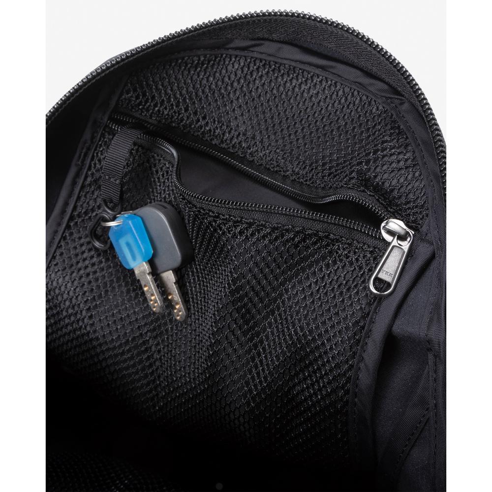 メインファブリックには、耐久性と耐水性に優れた「AzTec 8oz canvas」を使用。本体容量は20.5Lで、内部にはファスナーポケットや背面メッシュスリーブ、キークリップを備えているため毎日持ち歩く物もしっかり収納できます。伝統的デザインの2本のフロントストラップは、収納した容量に応じて本体をコンプレッションが可能。サイドポケットはボトルや折りたたみ傘などの収納に便利です。