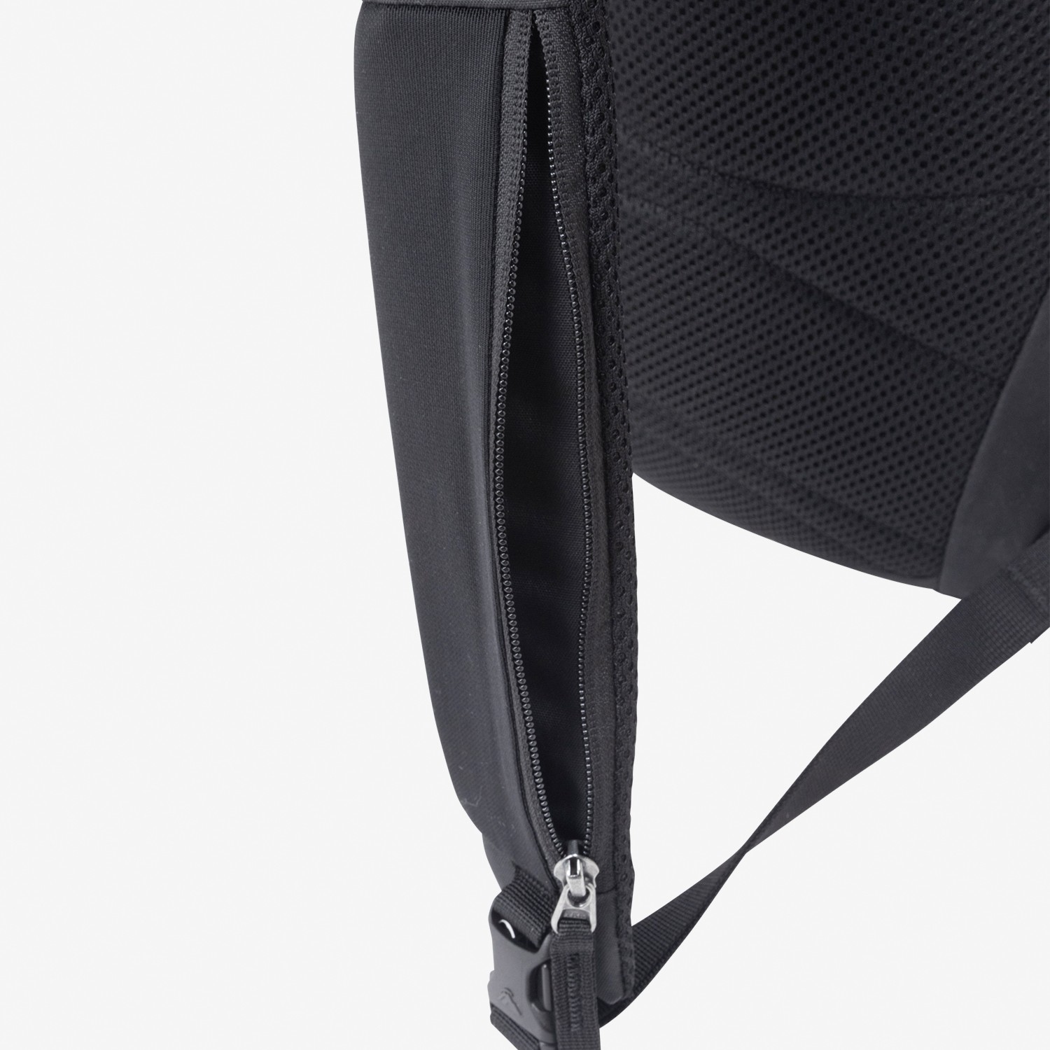 背面パッドは、クッション性と通気性をもつメッシュバックパネルを採用し、快適に背負えます。ショルダーストラップは、体型に合わせて、長さを調節可能。12Lの容量ながら充実の収納力を備えた、シンプルなデザインで日常や通勤に対応します。