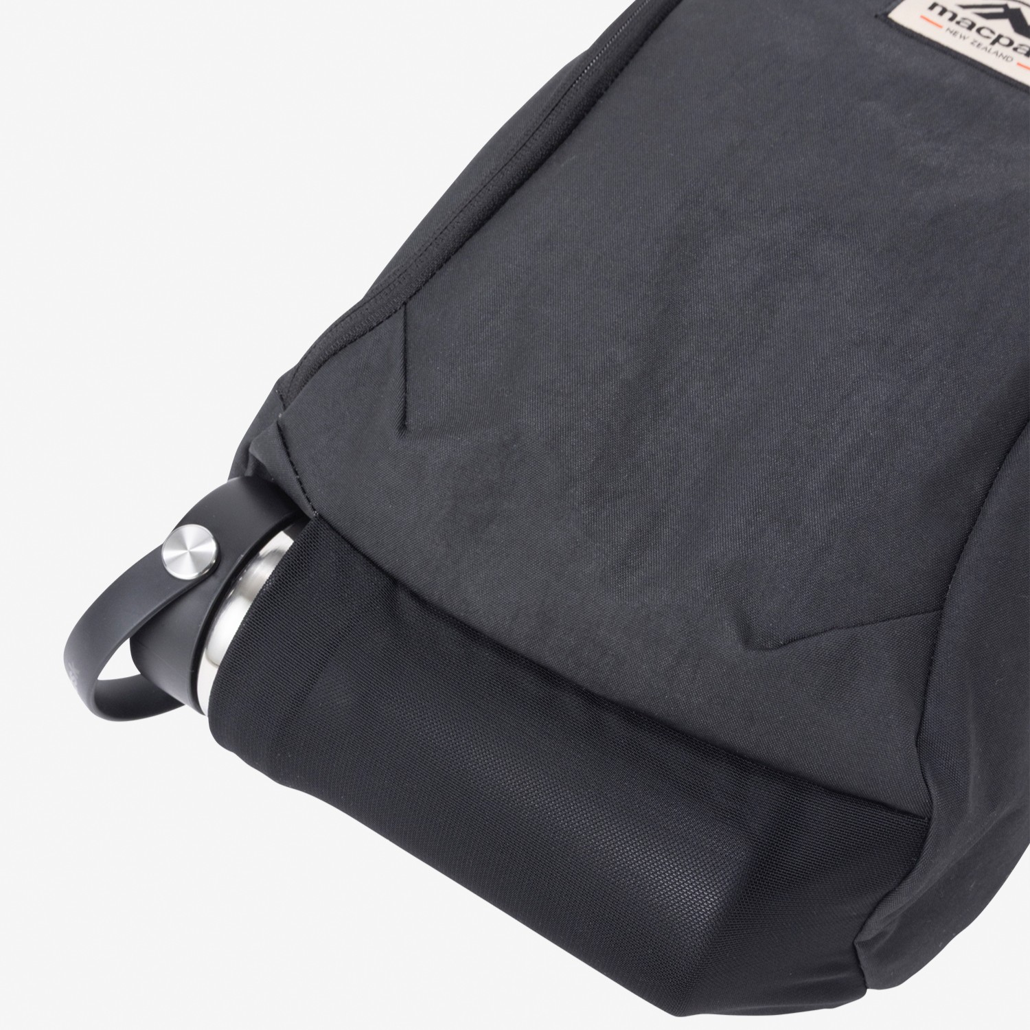 素材には、耐久性と耐水性を備えたリサイクルオックスフォードナイロンを採用しています。本体内部に、11インチまで対応可能なタブレット用ファスナーポケットを備えています。ショルダーストラップのファスナー付きポケットは、スマートフォンやカギなどの収納に便利。ボトムにはボトルポケットも装備しています。