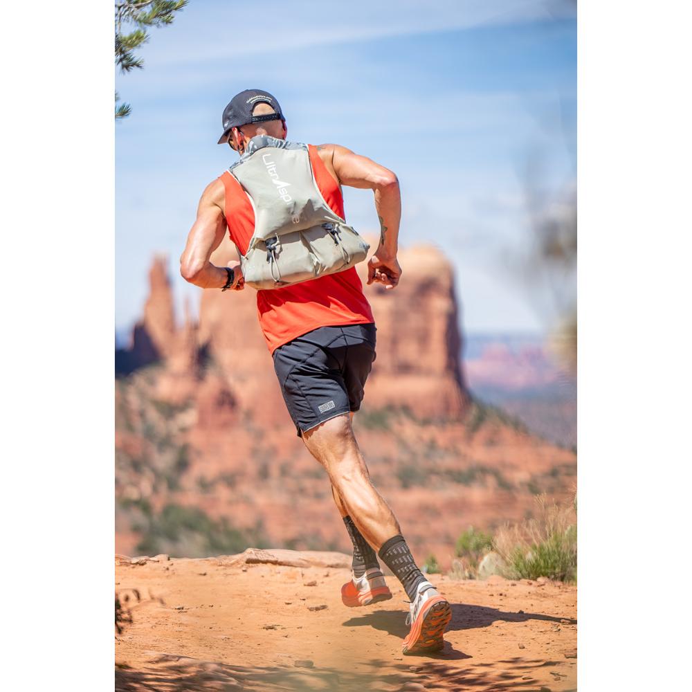 Big Bronco2.0は、ウルトラランナーのJeff Browningと共同開発された12リットルのパックです。7つのポケットは移動中にアクセス可能で、500mlのソフトフラスク2つが付属しています。特徴的な背面ボトル収納システムで直感的なアクセスを提供し、ギアの整理がしやすい設計です。メインコンパートメントは4方向伸縮メッシュで大容量に対応し、GPSポケットやZポールアタッチメントも装備されています。MaxO2フォームクロージャーシステムとErgoFit(TM)デザインで快適さを確保し、3つのサイズで展開