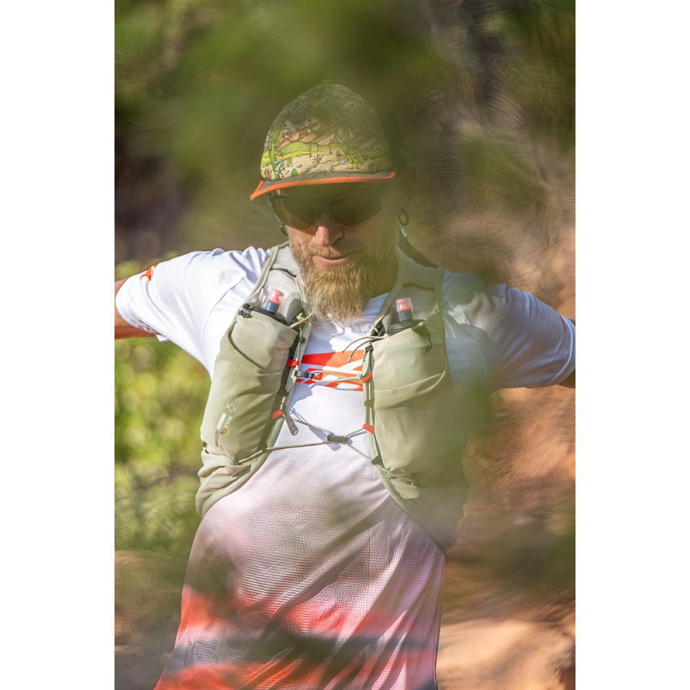 Big Bronco2.0は、ウルトラランナーのJeff Browningと共同開発された12リットルのパックです。7つのポケットは移動中にアクセス可能で、500mlのソフトフラスク2つが付属しています。特徴的な背面ボトル収納システムで直感的なアクセスを提供し、ギアの整理がしやすい設計です。メインコンパートメントは4方向伸縮メッシュで大容量に対応し、GPSポケットやZポールアタッチメントも装備されています。MaxO2フォームクロージャーシステムとErgoFit(TM)デザインで快適さを確保し、3つのサイズで展開