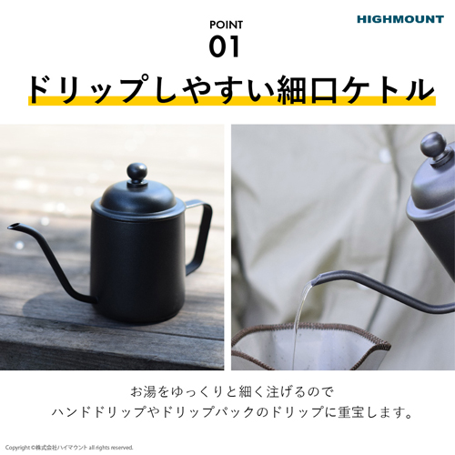 お湯をゆっくりと細く注げるのでハンドドリップやドリップパックのドリップに重宝します。