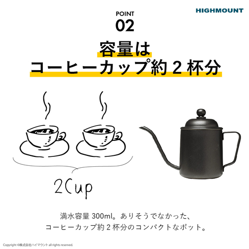 ありそうでなかった約2杯分のコンパクトなコーヒードリップポットです。