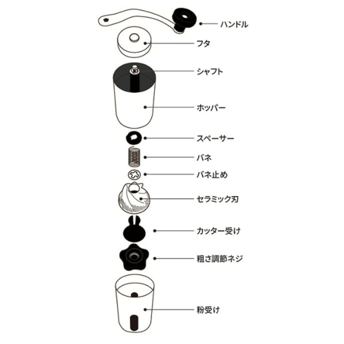 人気のコーヒーミルにゴールドカラーが登場。コーヒーの風味を損なわないようセラミック刃を使用しています。