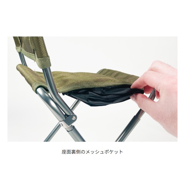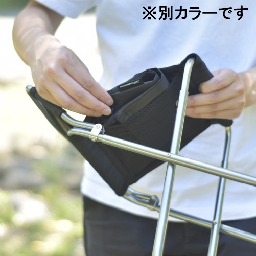 座面の裏側にはメッシュ素材のポケットがあり、付属のケースを収納することができます。