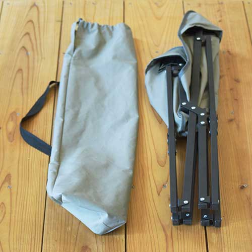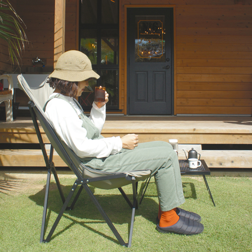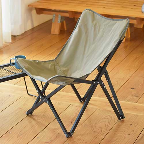 包み込まれるようなホールド感でゆったり座れる丈夫なポリコットン素材のローチェア。フレームを広げて座面をかぶせるだけで簡単に組み立てられます。